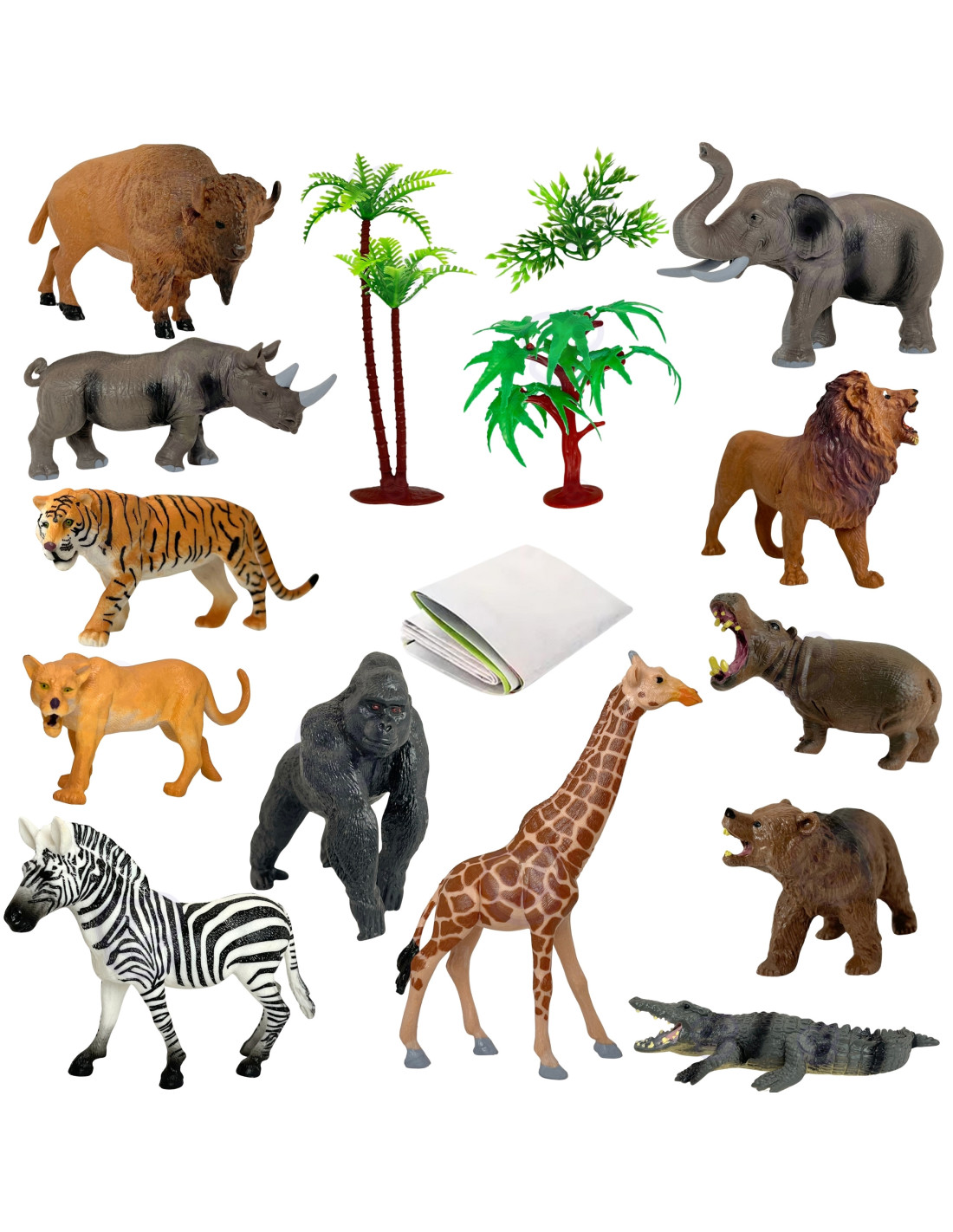 The " Wild Animals " figurine set from WOOPIE is a great gift idea for young animal lovers. The set includes 12 diverse, realistically reproduced animal figurines and a large, soft play mat . It's perfect for learning through play. Children will learn to recognize animal species and name them. The set comes with a practical carrying case with a convenient handle , which allows not only for quick cleanup but also for taking it on the go in its compact box. The included mat will spark your child's imagination – the park theme and vibrant, eye-catching colors will spark many different play scenarios .