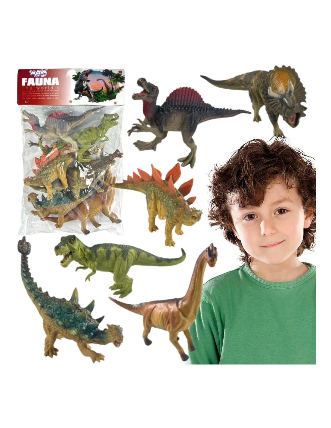 Discover the world of prehistoric giants with this set of dinosaur figurines from Woopie , which transports children to a time when enormous reptiles ruled the Earth. Each figure is made of flexible and safe rubber , ensuring comfortable play and resistance to falls and everyday use. Thanks to realistic details – from clearly defined scales and natural colors to precisely reproduced body proportions – children can feel like real little paleontologists. The set includes a variety of dinosaur species, including the majestic Tyrannosaurus rex and the impressive Triceratops , allowing for exciting role-playing and creating their own adventures. The figurines encourage both individual and group play, developing imagination, creativity, and storytelling skills. This set allows children to create their own "Jurassic Parks," role-play dinosaur battles, learn through play, and develop a passion for paleontology. Perfect for both toddlers and older children as a complement to their figurine collection. It's the perfect way to develop a child's passions and interests in a natural, engaging way.