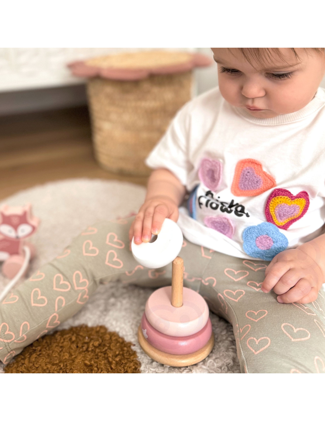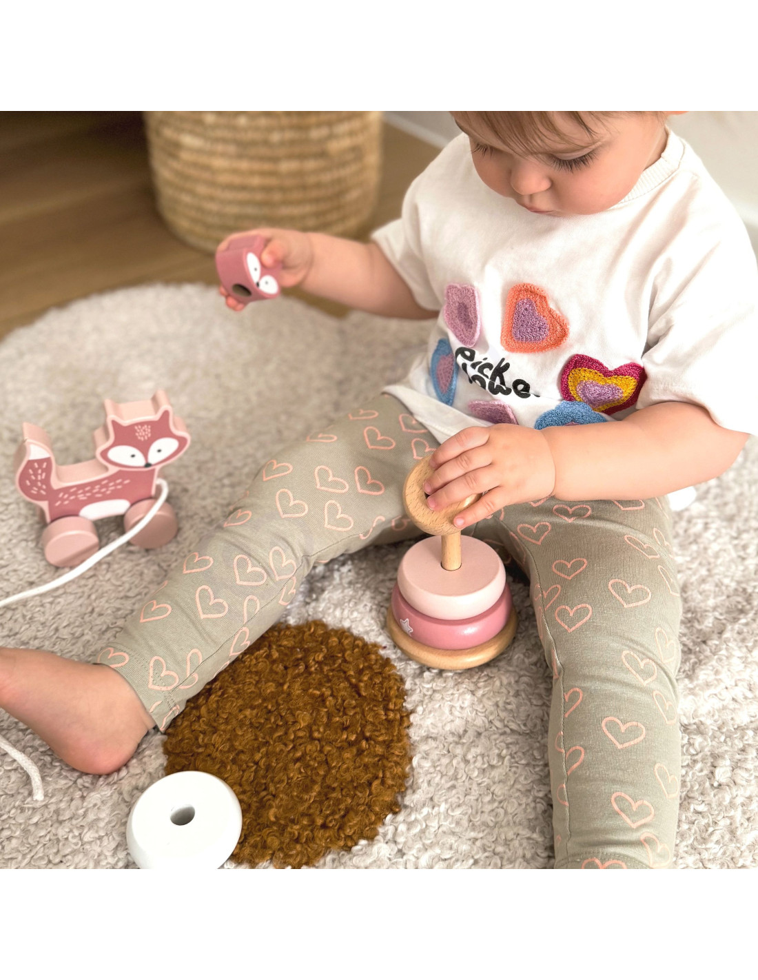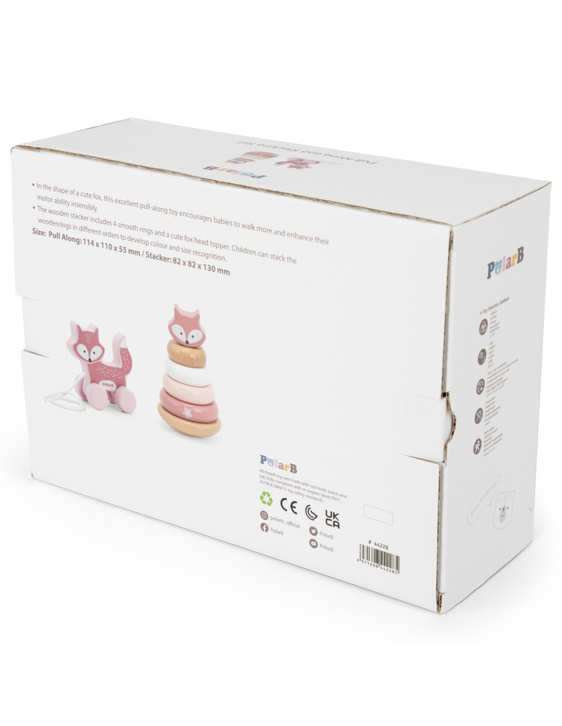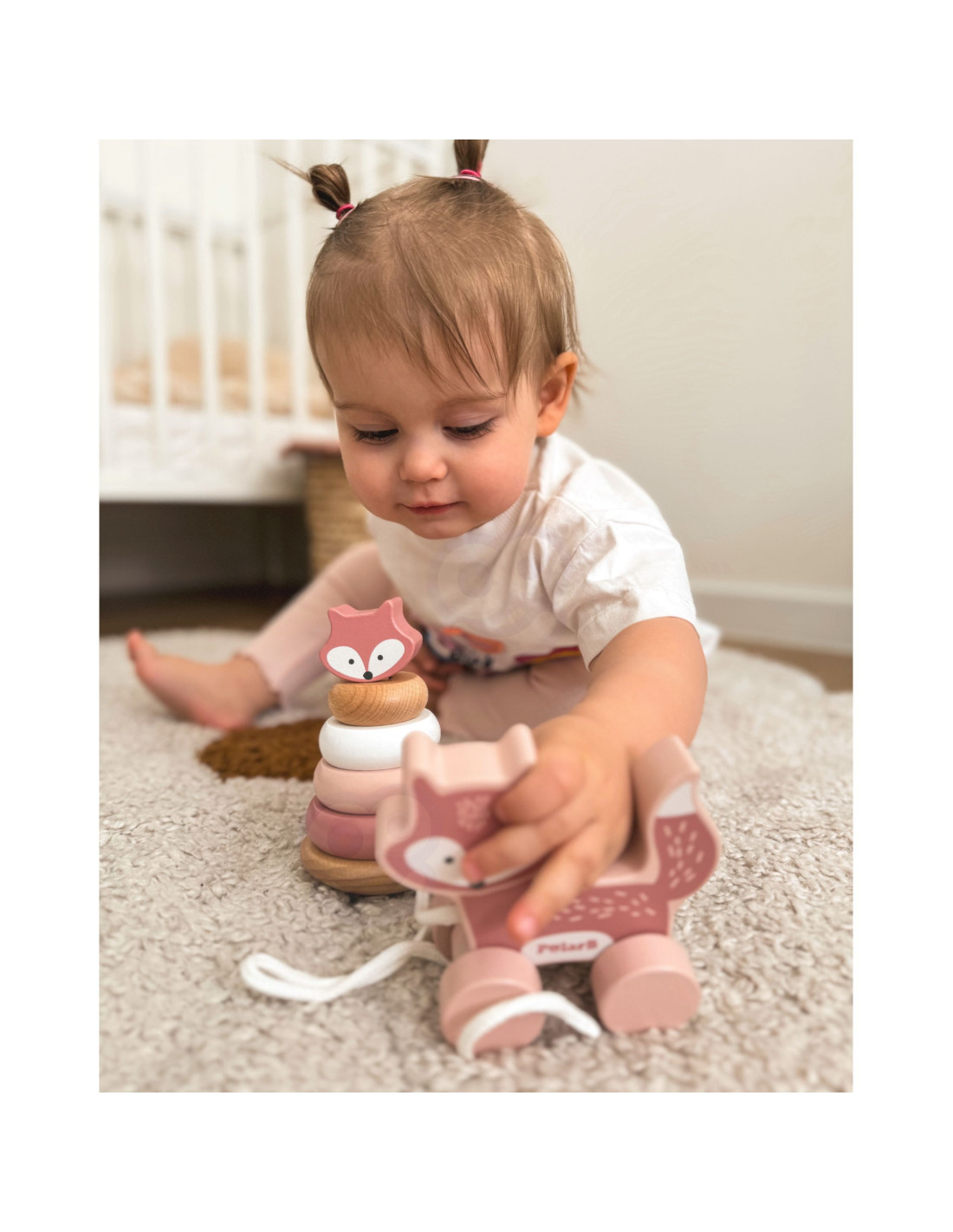 This set from the Viga brand, part of the PolarB collection, includes two pastel wooden toys: a Fox Educational Pyramid and a Fox Pull-Along . Both toys will not only keep your child entertained but will also help develop fine motor skills , logical thinking , and colors.