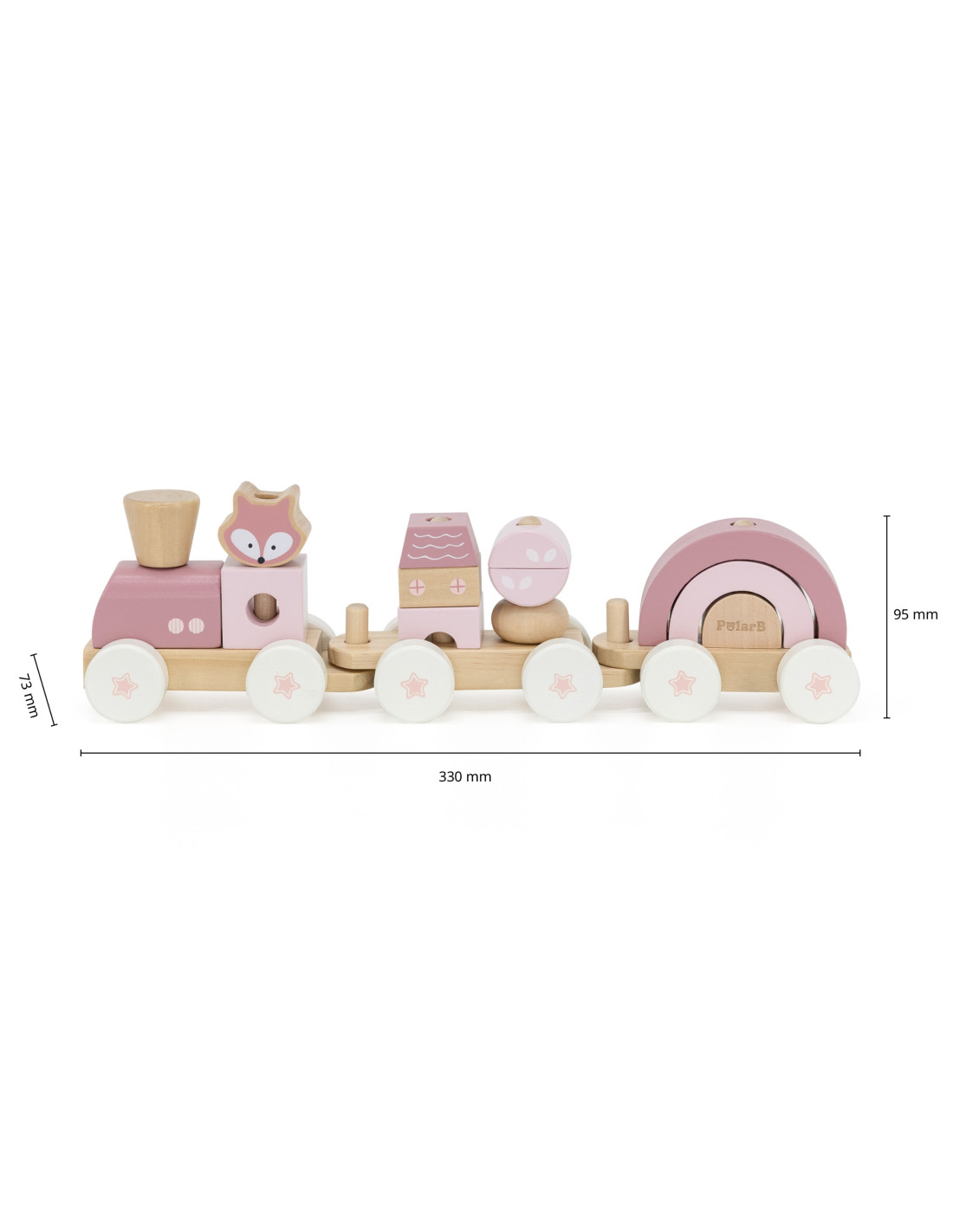 This charming, pink train set from the Viga PolarB series is the perfect toy that combines the joy of play with the development of manual skills and creativity. It consists of three carriages and 14 blocks of different shapes that can be arranged in any combination. Children can connect the carriages, create interesting structures, or play with them independently – the possibilities are endless! Thanks to its subdued colors and easy-to-grip elements, this toy is perfect for the youngest children.