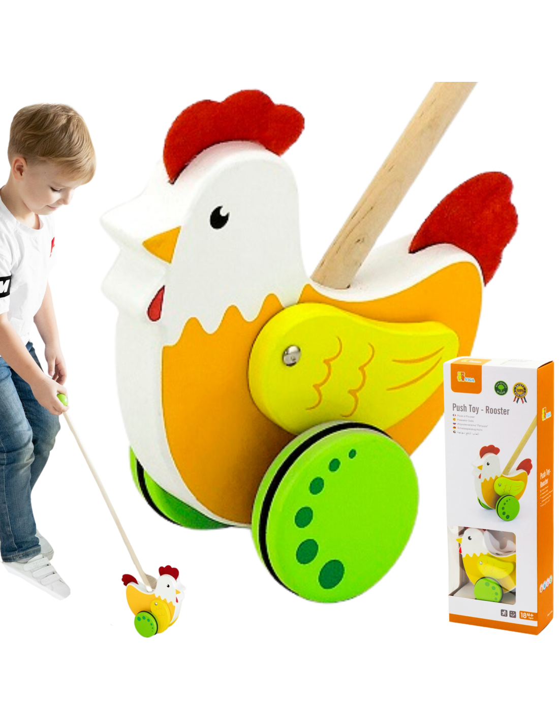 Pchacz z kogucikiem na kijku od firmy Viga jest przeznaczona dla dzieci, które właśnie uczą się stawiać pierwsze kroki. Kolorowy pchacz na pewno zachęci maluszka do doskonalenia techniki chodzenia i umili każdy rodzinny spacer.