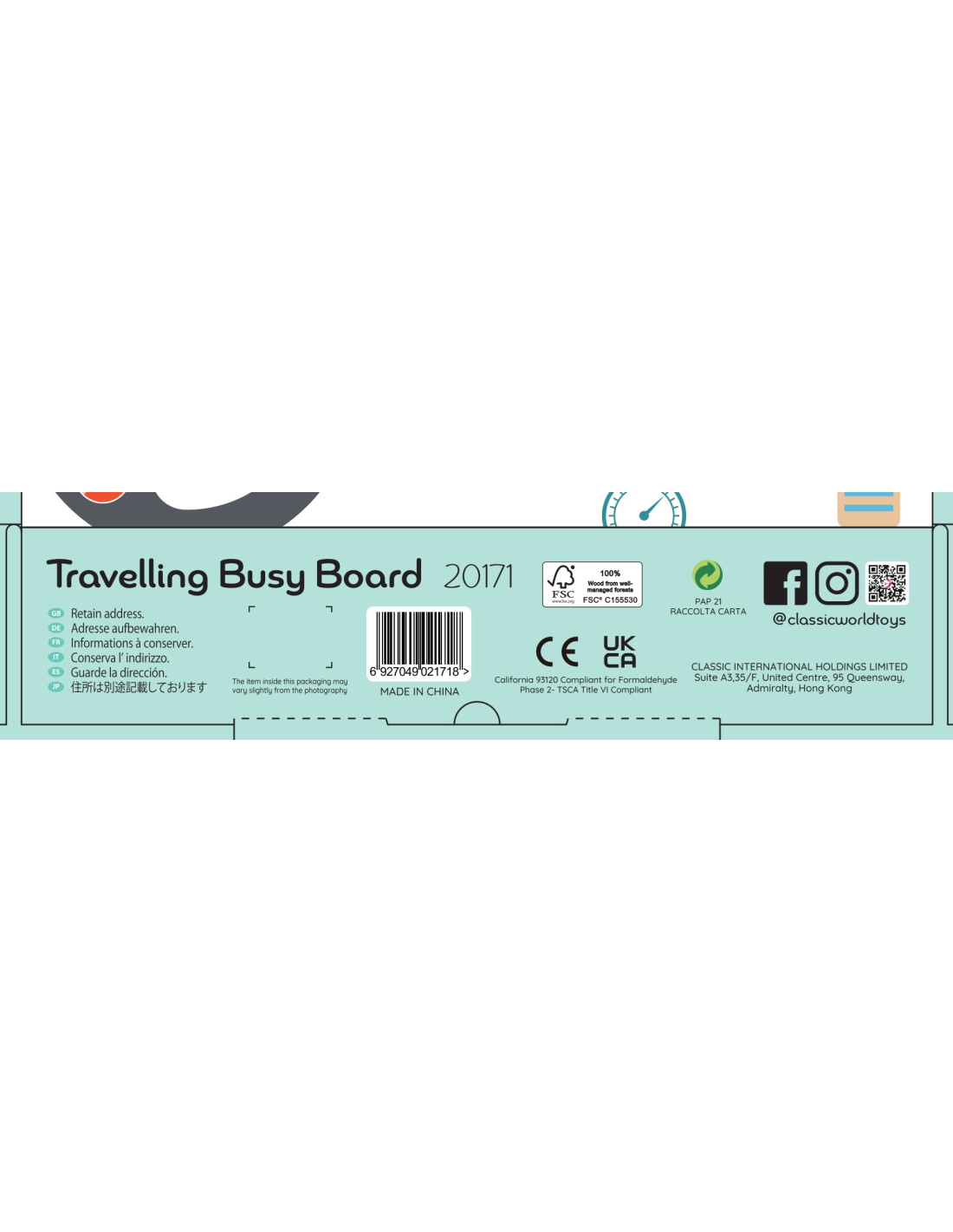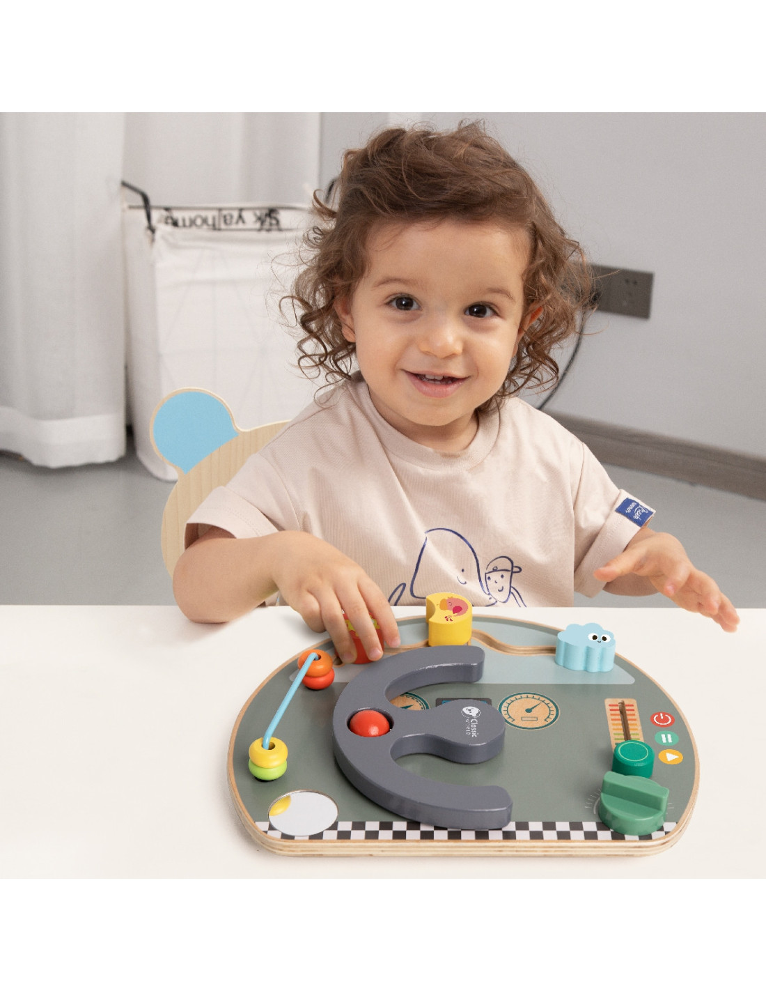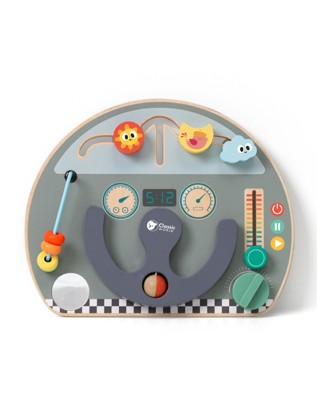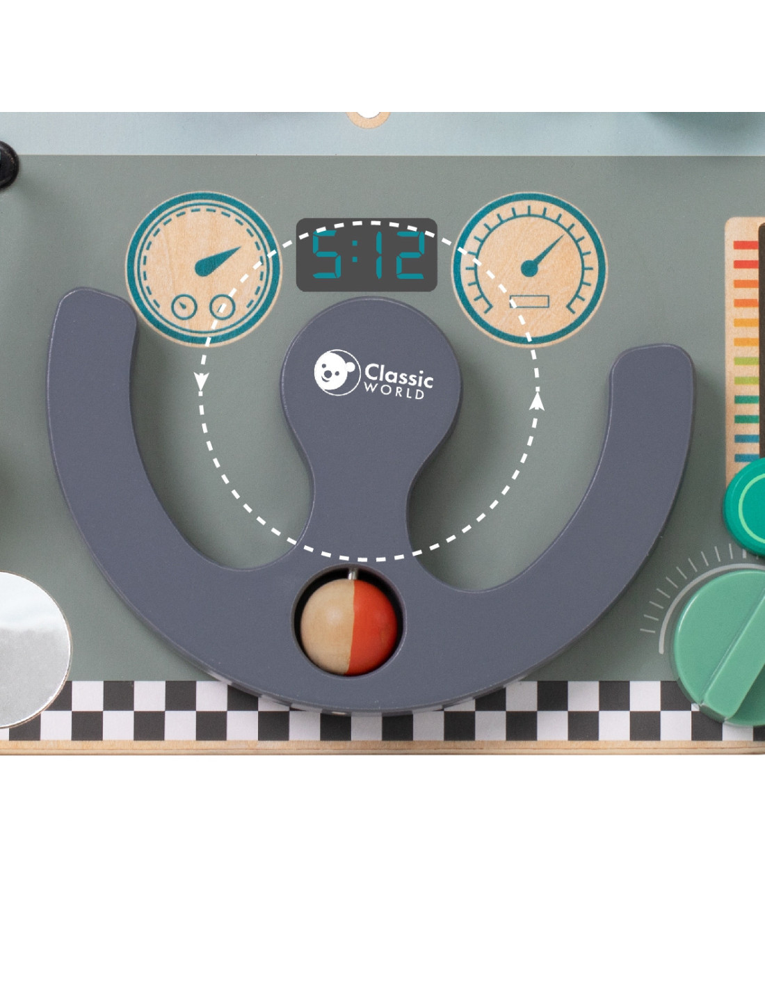 The 6-in-1 activity board from CLASSIC WORLD is the perfect toy for long journeys. The board features a maze , beads , a spinning wheel , a roller , a mirror , and knobs that will keep your little one entertained for hours. Children love imitating their parents in everyday activities, and with this toy, they'll feel like they're driving the vehicle themselves. The interesting design and numerous elements will stimulate a child's imagination and creativity , while also developing their manual dexterity and coordination .