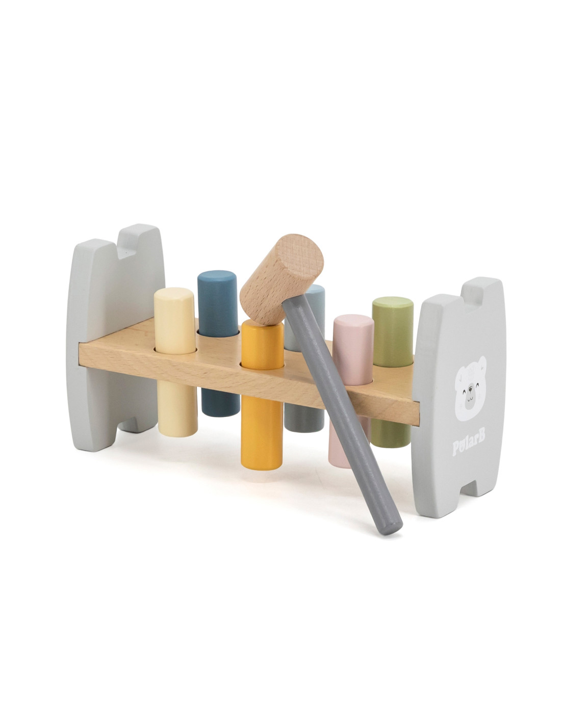 - wooden punching machine – a colorful bench with 6 pegs and a hammer that develops wrist flexibility and motor coordination