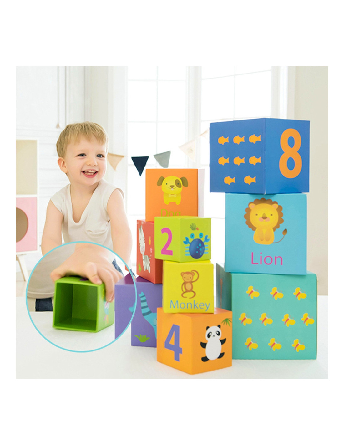 - - Na każdej kostce inna cyfra, inne zwierzątko i różne słowa.