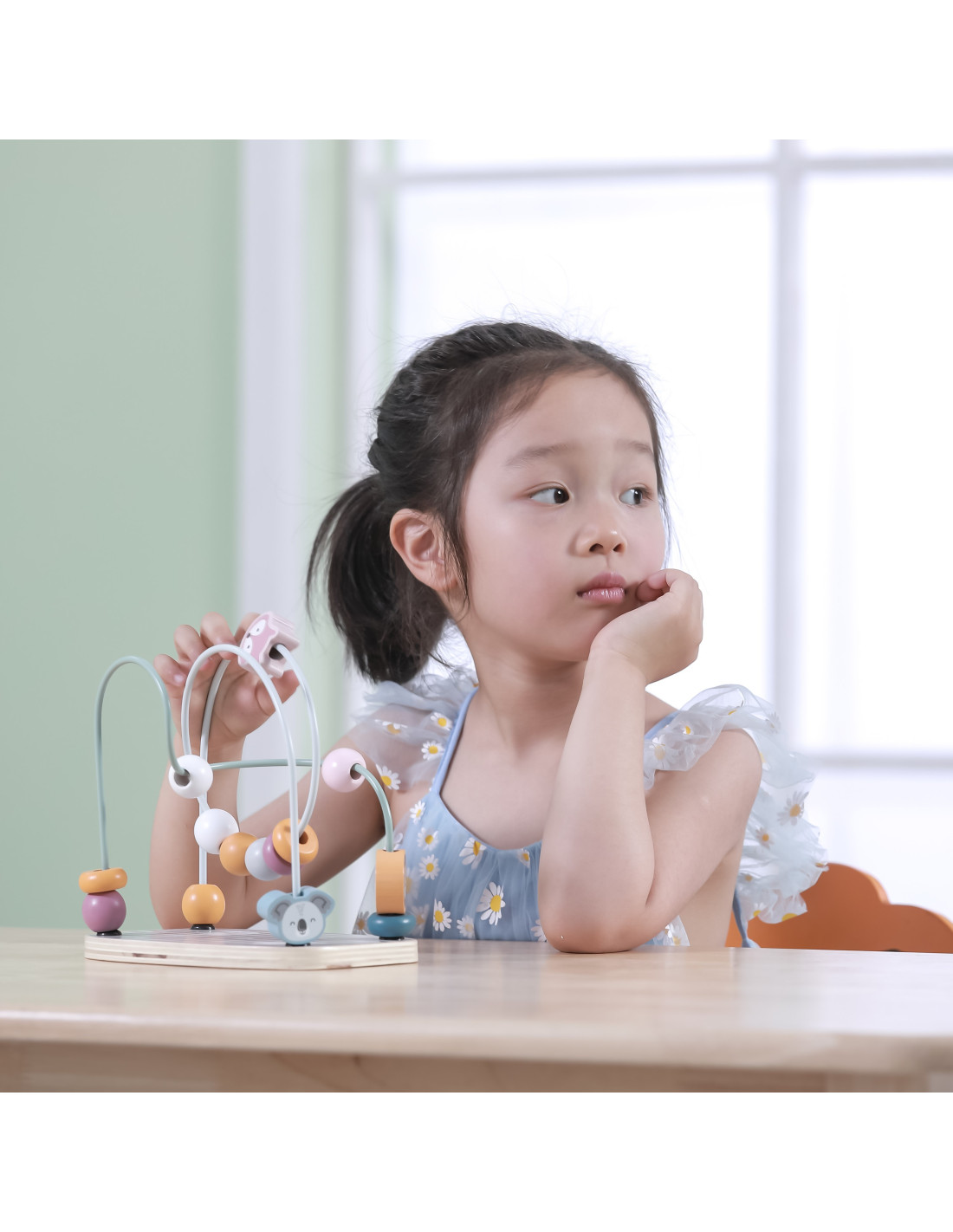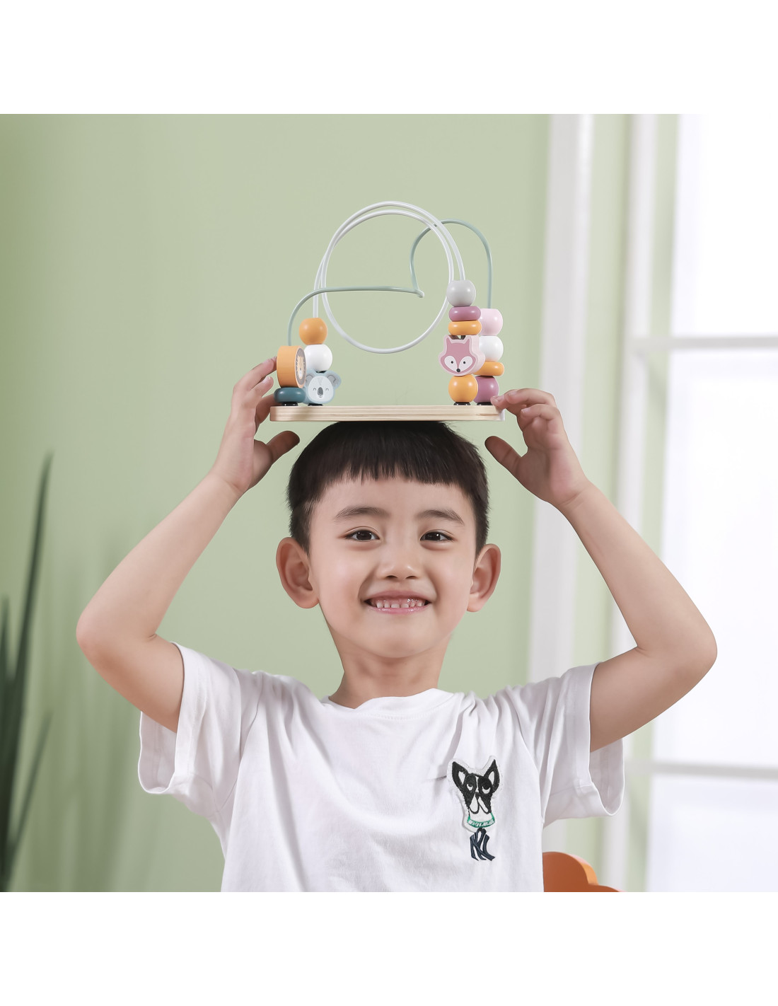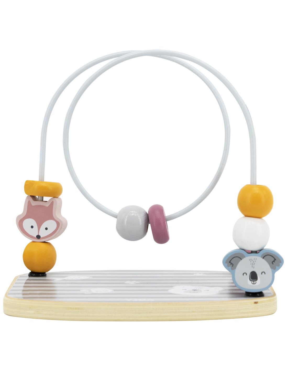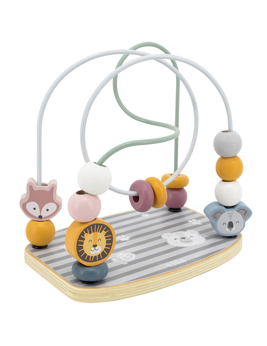 Drewniane pętle motoryczne to świetna zabawka sensoryczna, która pozwala dziecku trenować sprawność rączek. Przeplatając koraliki przez zakrzywione rurki, dziecko musi wykonywać odpowiednie ruchy, aby działania odniosły sukces. Tym sposobem dziecko uczy się jakie ruchy należy wykonywać i jak poprawnie kontrolować własne ciało, by wykonywało takie czynności, jakie mamy na celu. Zabawka składa się z drewnianej podstawy, na której ustawione są 4 rurki. Na rurkach nawleczone są kolorowe koraliki i kilka klocków z podobiznami zwierzątek, które na pewno przyciągną uwagę pociech.