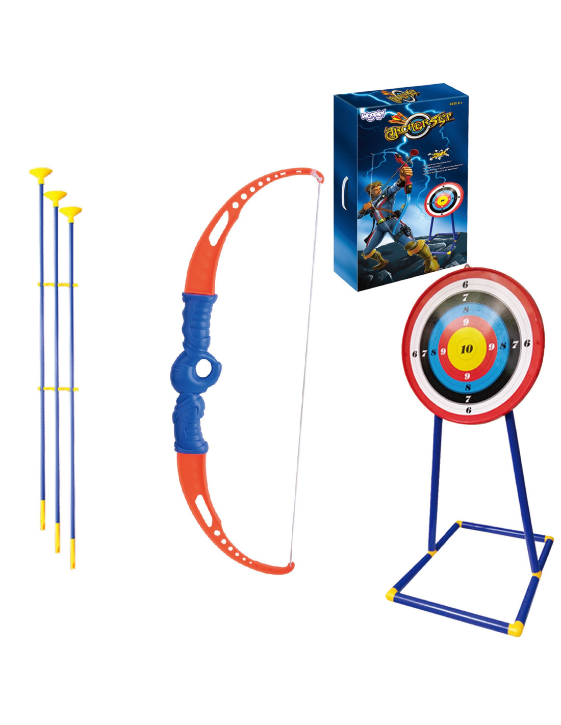 - - the set includes a bow resembling the real version, 3 arrows with a suction cup at the end and a target that diversifies the fun of aiming at as many points as possible ,