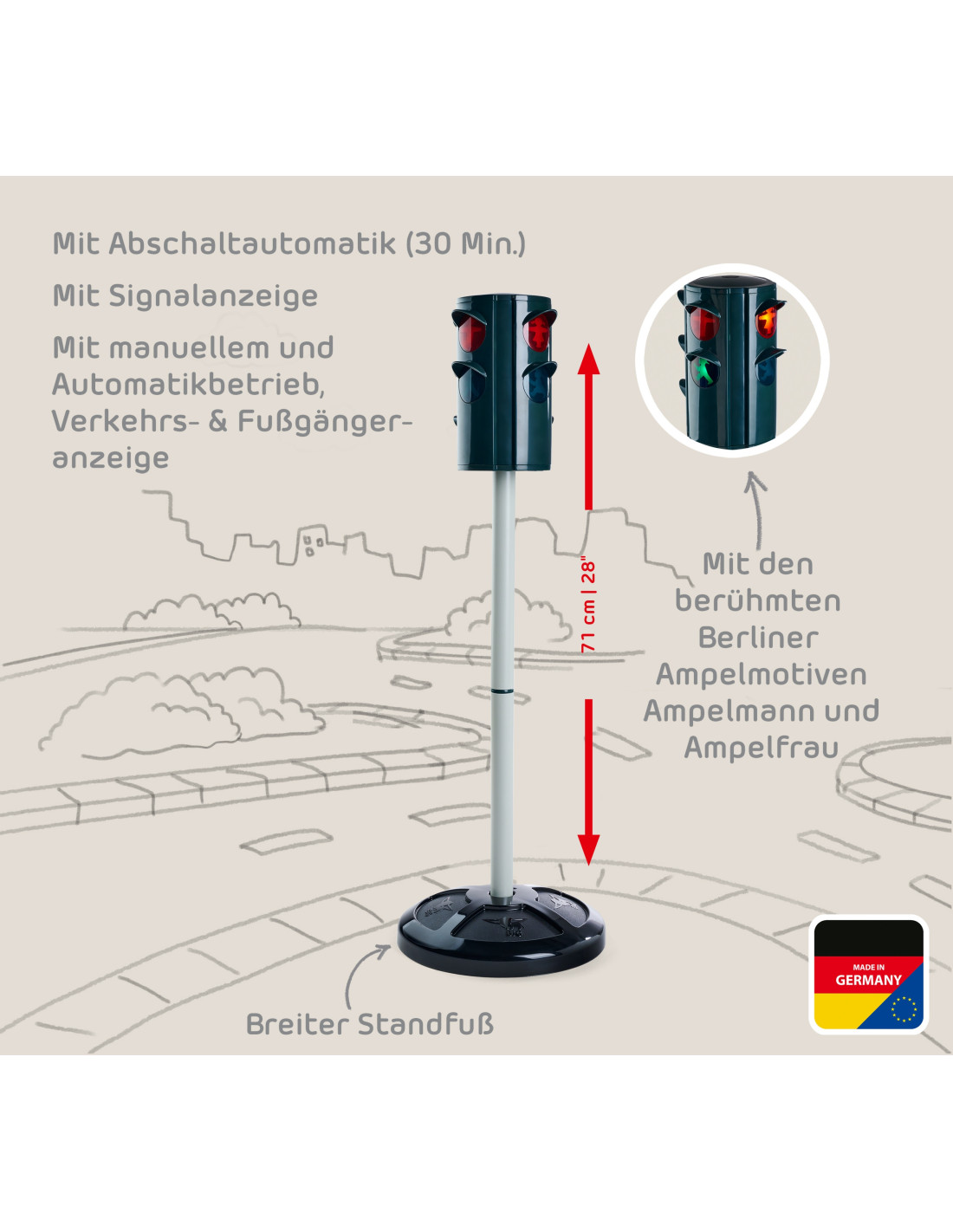 BIG Traffic Lights are a great way to introduce young children to the rules of the road. Thanks to realistic traffic light changes and licensed Ampelmännchen & Ampelfrau characters from the iconic Berlin brand AMPELMANN, children as young as 3 years old can learn road safety in a playful way!