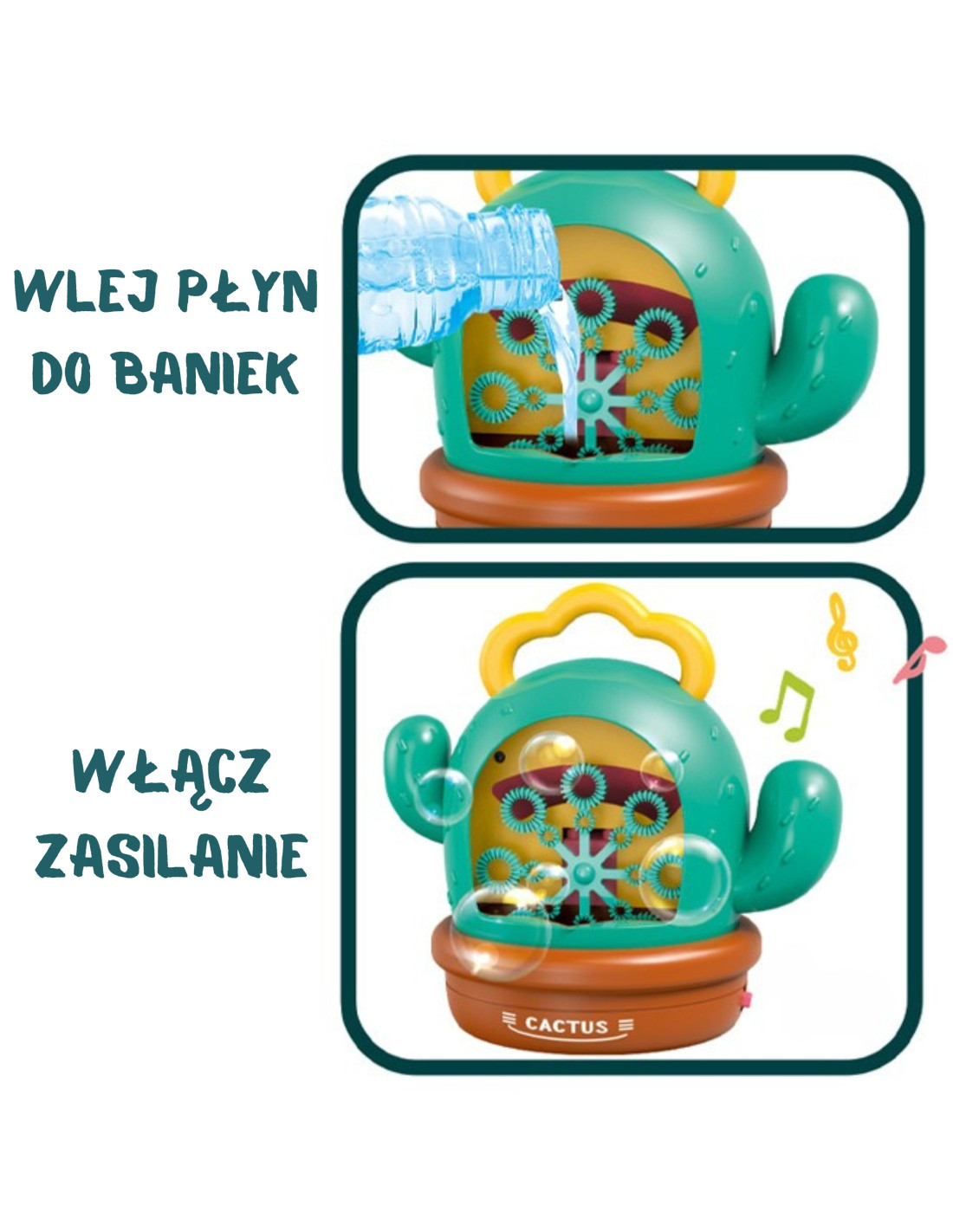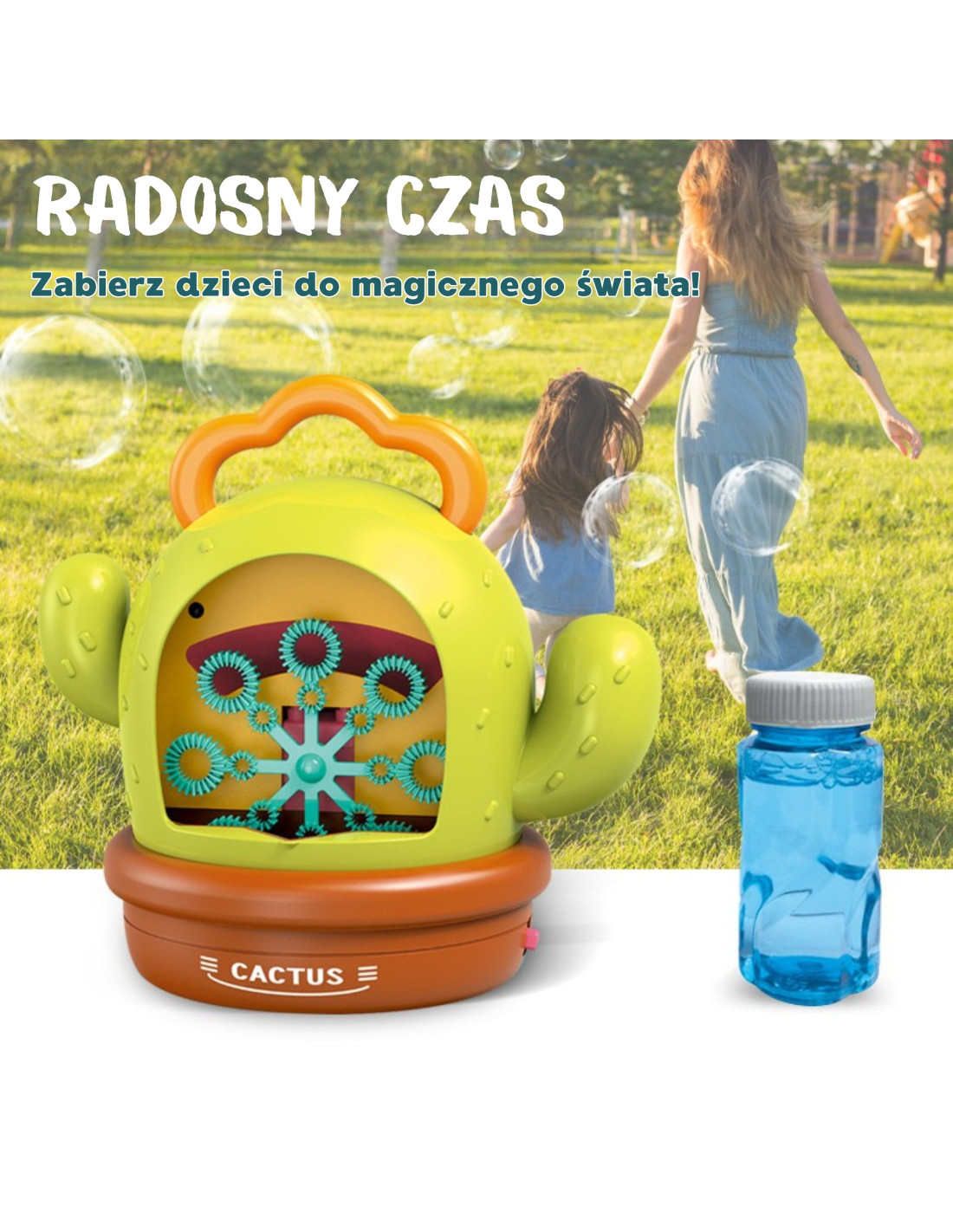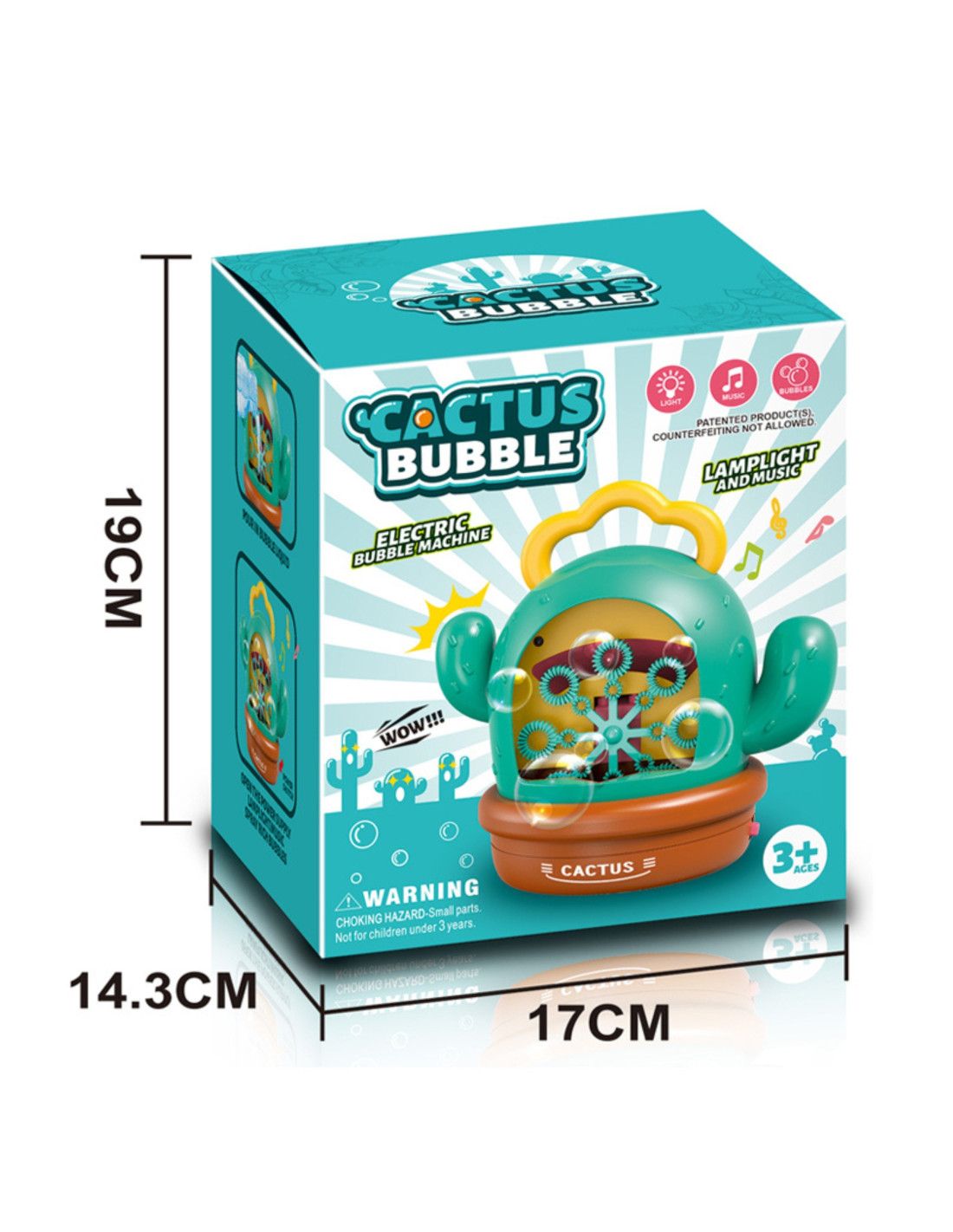 Discover the joy of play with the Woopie electric bubble machine. This colorful, adorable cactus-shaped toy instantly turns every day into a magical adventure , blowing hundreds of bubbles with charming bubbly sounds and flashing colorful lights. Simply pour in the liquid, turn it on, and watch as your room or garden fills with bubbles that will delight every child and adult!