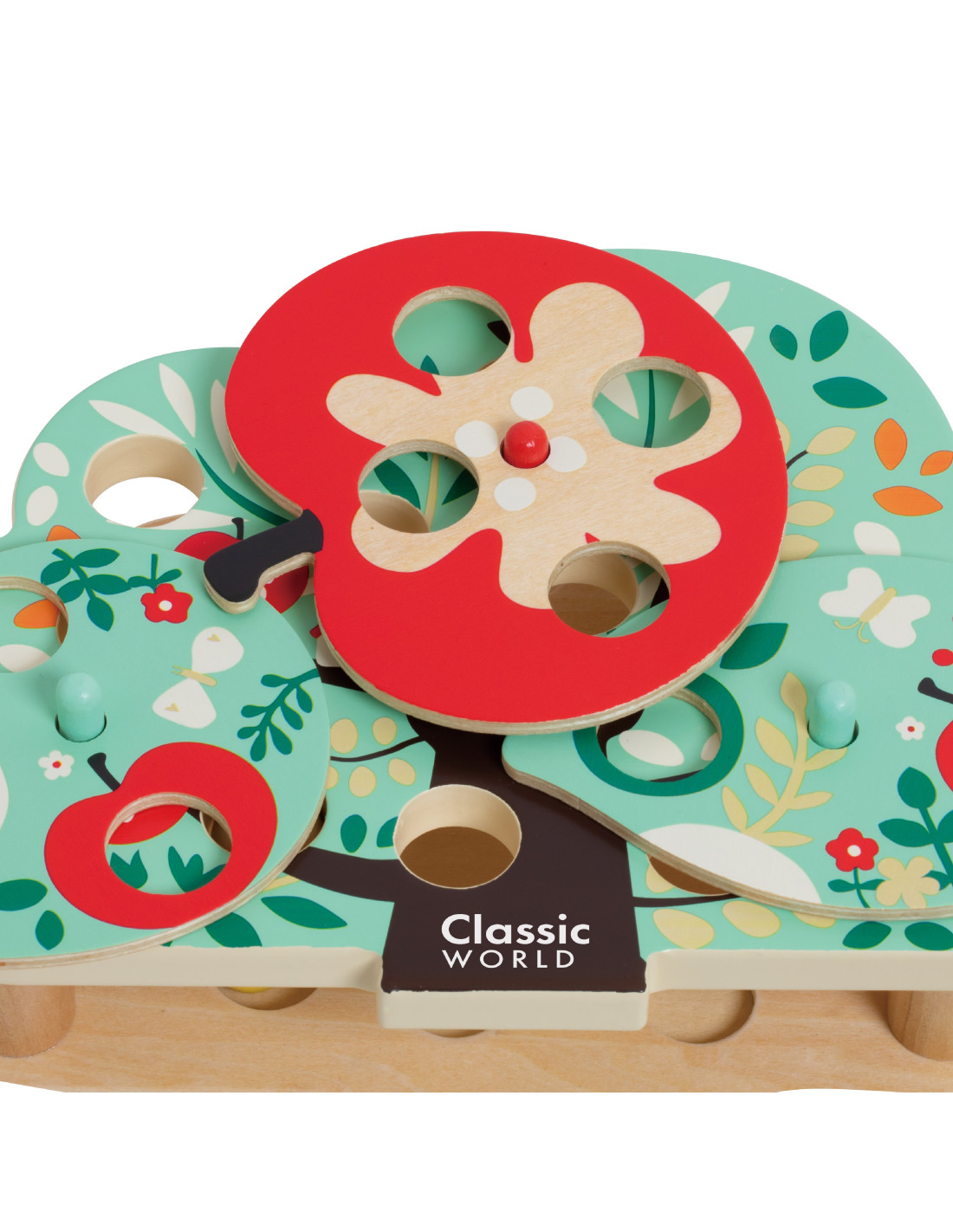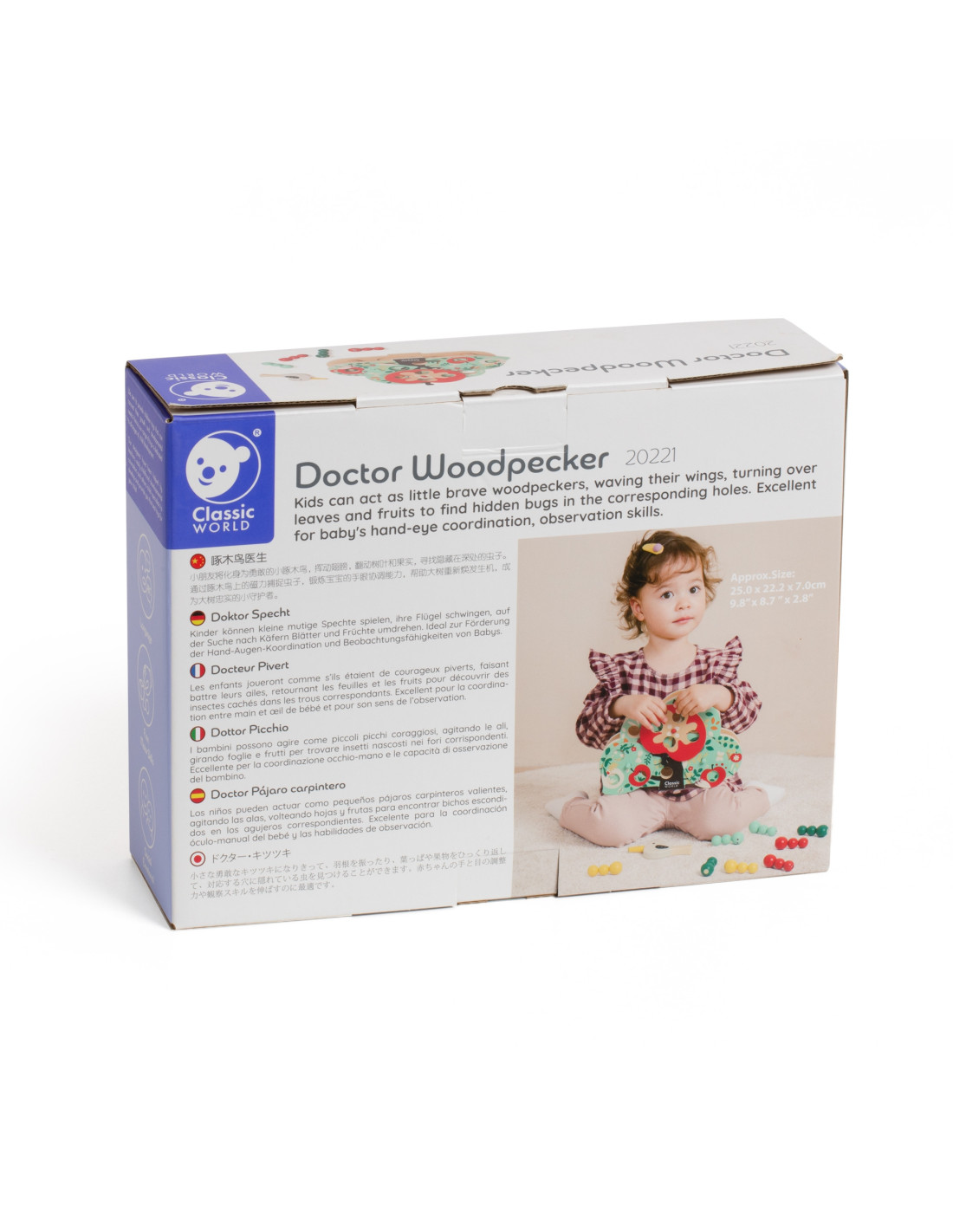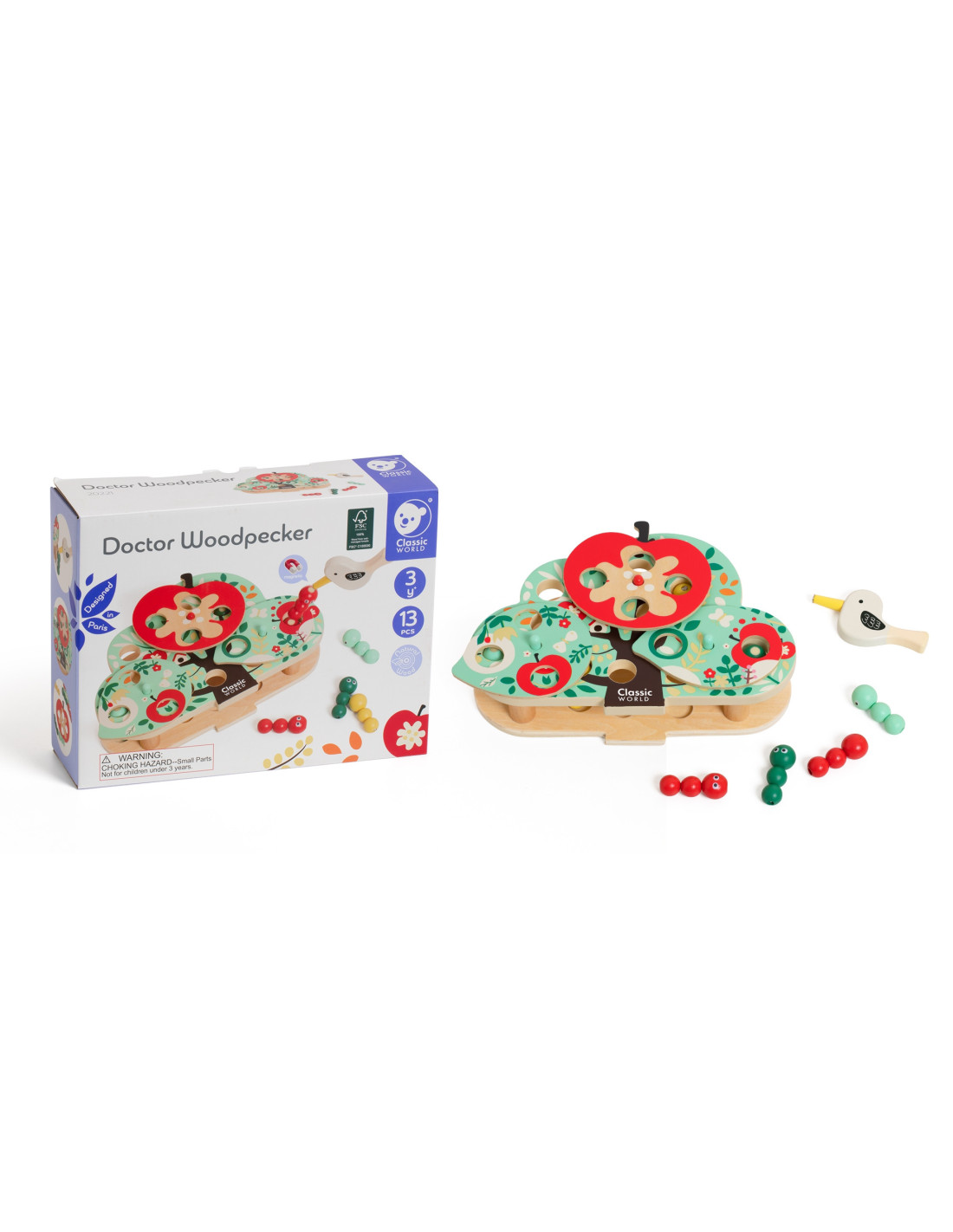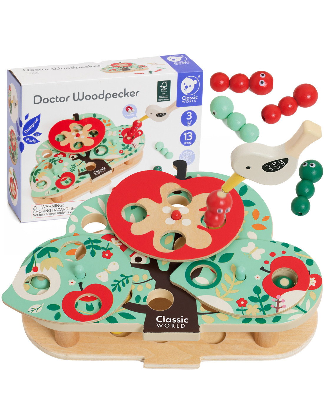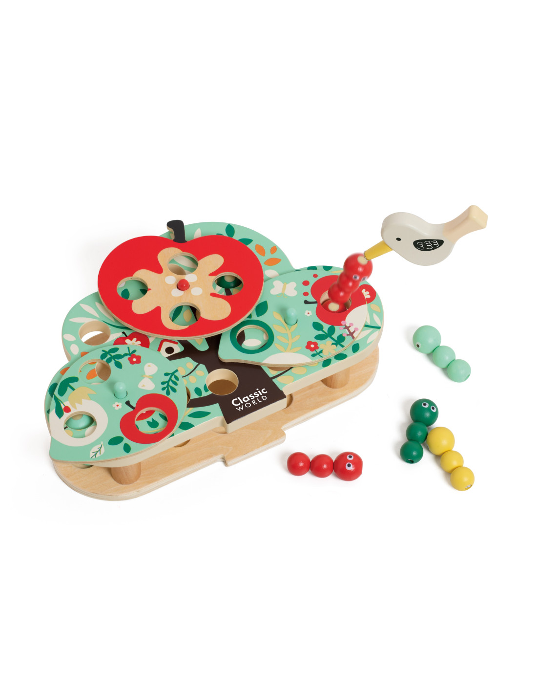 The interactive woodpecker from CLASSIC WORLD lets children act like brave little woodpeckers, flapping their wings and turning over leaves and fruit to find hidden bugs in the corresponding holes. It's a great toy for developing hand-eye coordination and observation skills .
