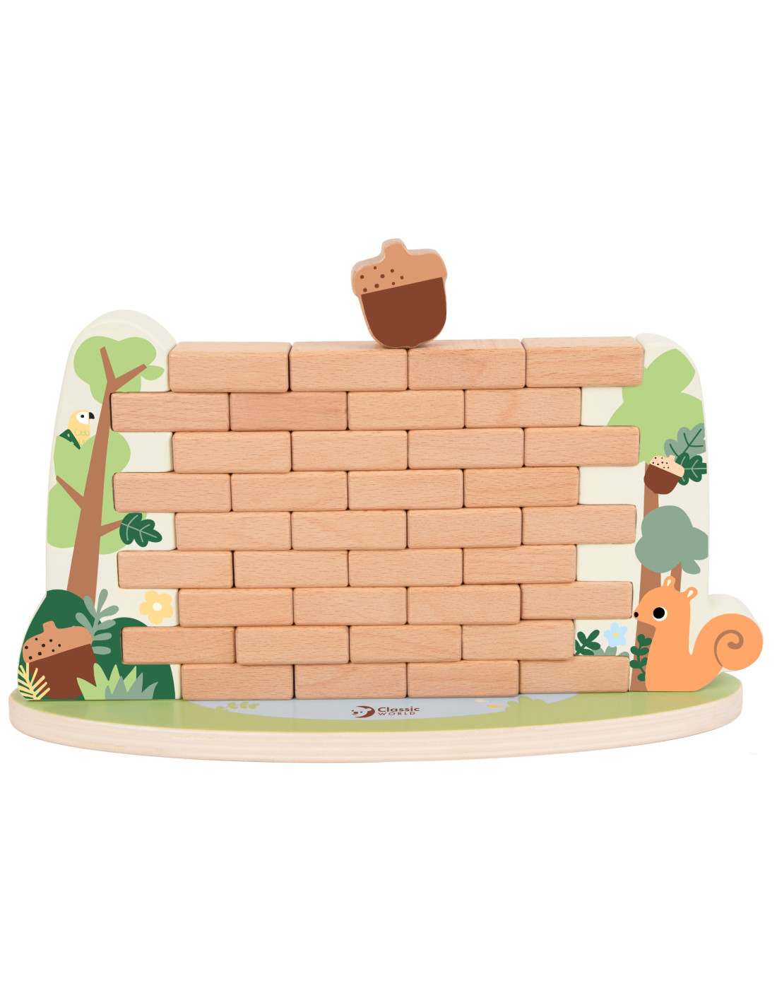 The Falling Peanut skill game from Classic World is an engaging game for children that develops dexterity, patience, and logical thinking. Players must pull wooden blocks from a wall without causing the top peanut to fall. The player who causes the peanut to fall or the structure to collapse loses.