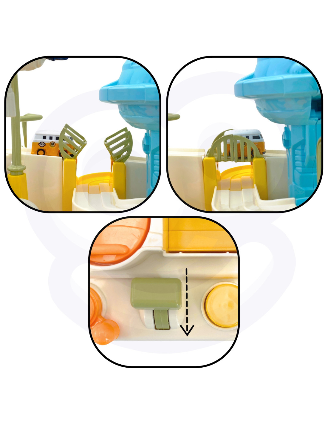 - Lifting Platform - The platform lifts the car, allowing it to return to the track to continue driving to the finish line
