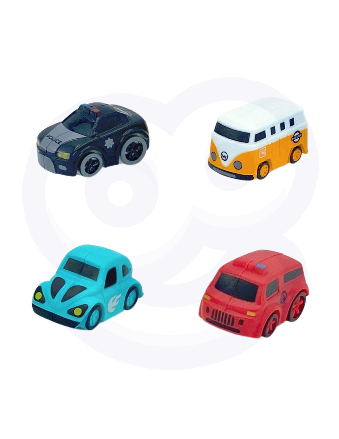 The set includes: 4 cars sent randomly and a space station track