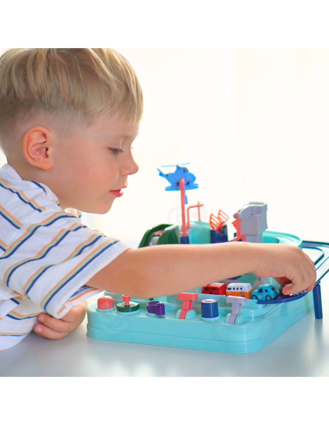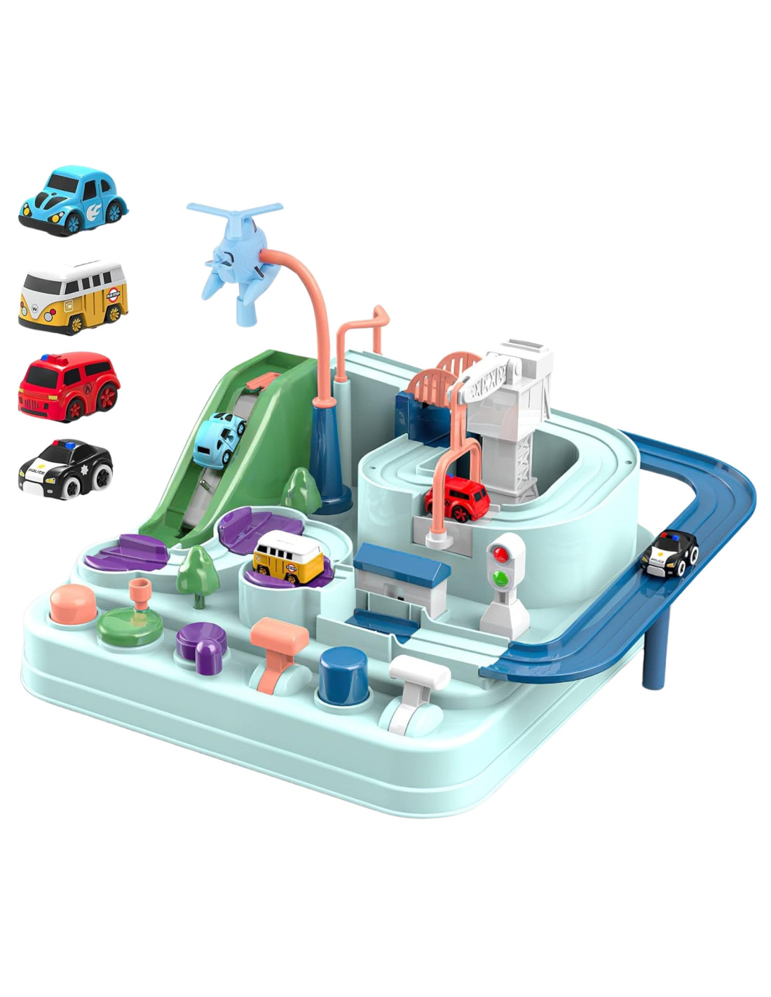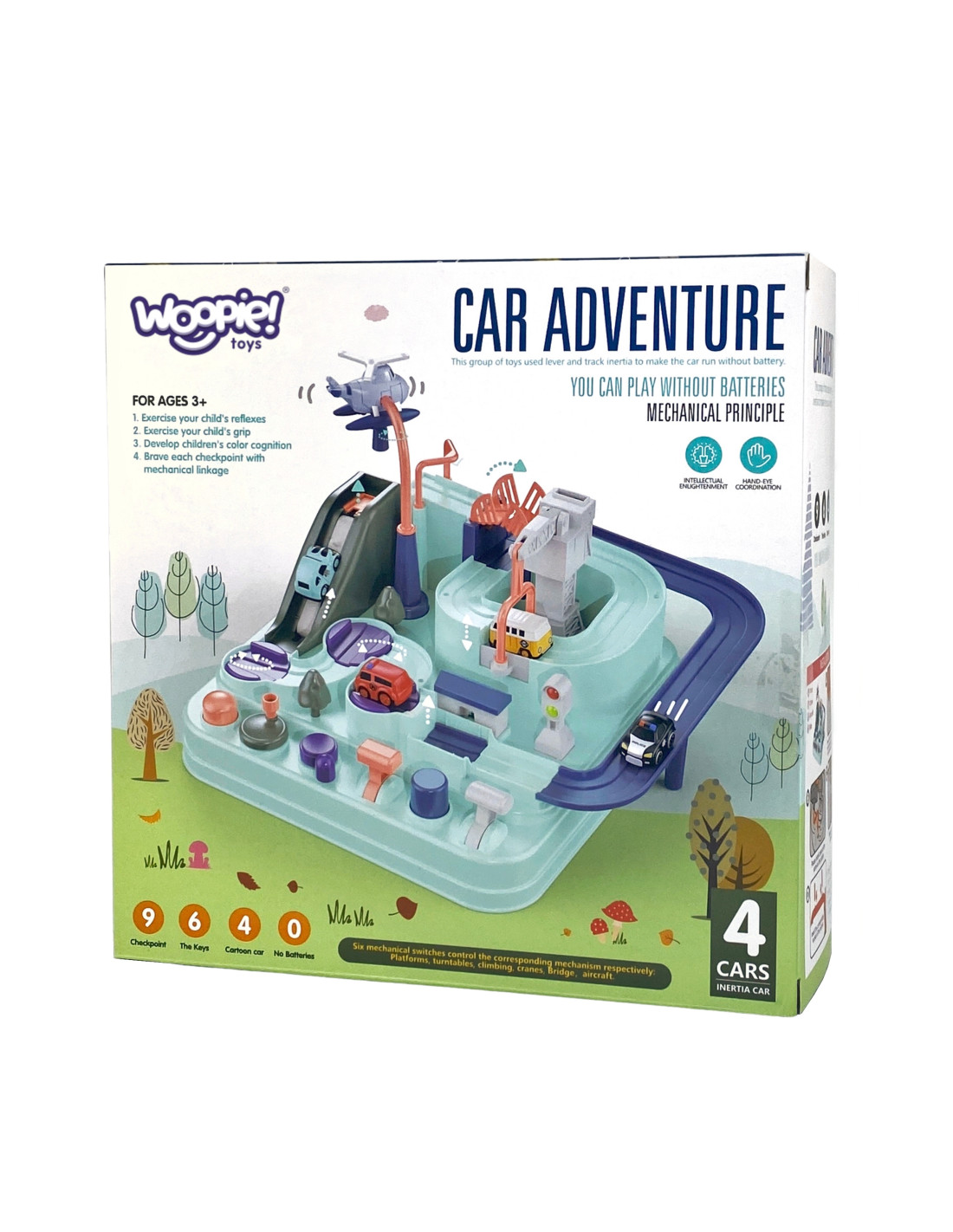 The interactive " Car Adventure " obstacle course is a unique gift for little explorers who crave exciting adventures and unforgettable challenges. It's more than just a toy—it's a real arena where children can take on the role of drivers and overcome various obstacles. Thanks to its clever design and diverse elements, the toy offers unforgettable moments full of excitement and challenges. It's the perfect tool for developing imagination and manual skills , while also providing tons of fun. The car track offers not only rides but also dynamic , interactive elements operated with buttons and knobs. It's an exciting game that requires focus and dexterity. The set includes three cars that can freely explore the track, depending on the child's imagination. The vehicles will diversify the fun or allow children to compete along the route. Driving through the track seems easy, but numerous elements, such as gears and drawbridges , will make the journey adrenaline-filled .