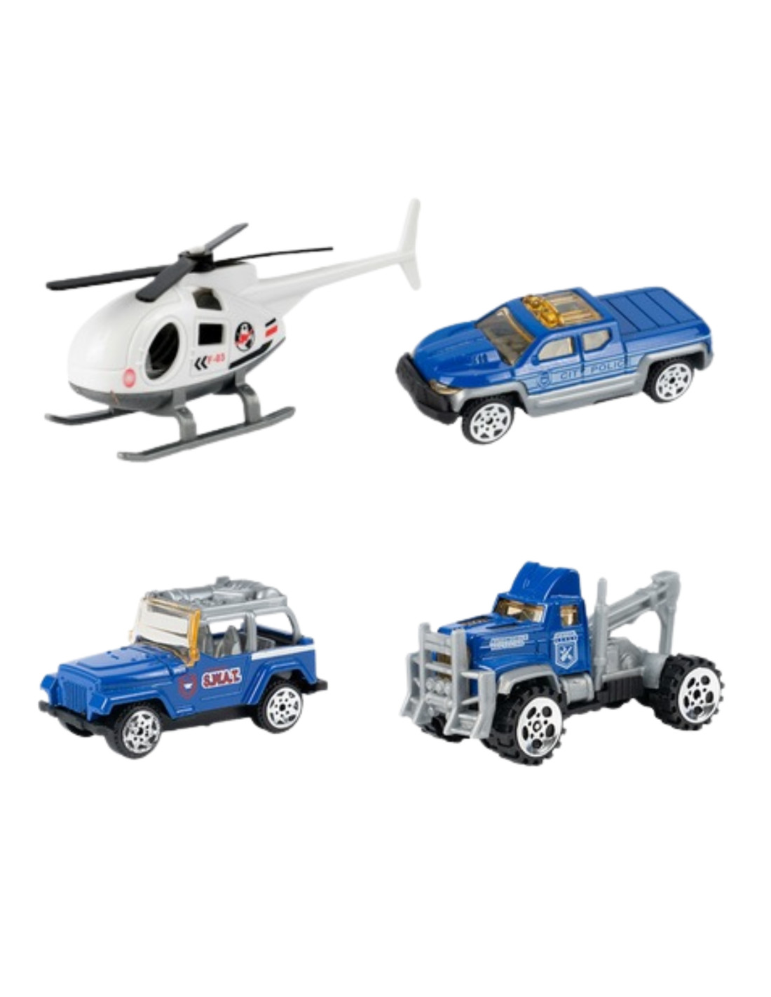 - - Includes police vehicles and a helicopter to play out a variety of scenarios