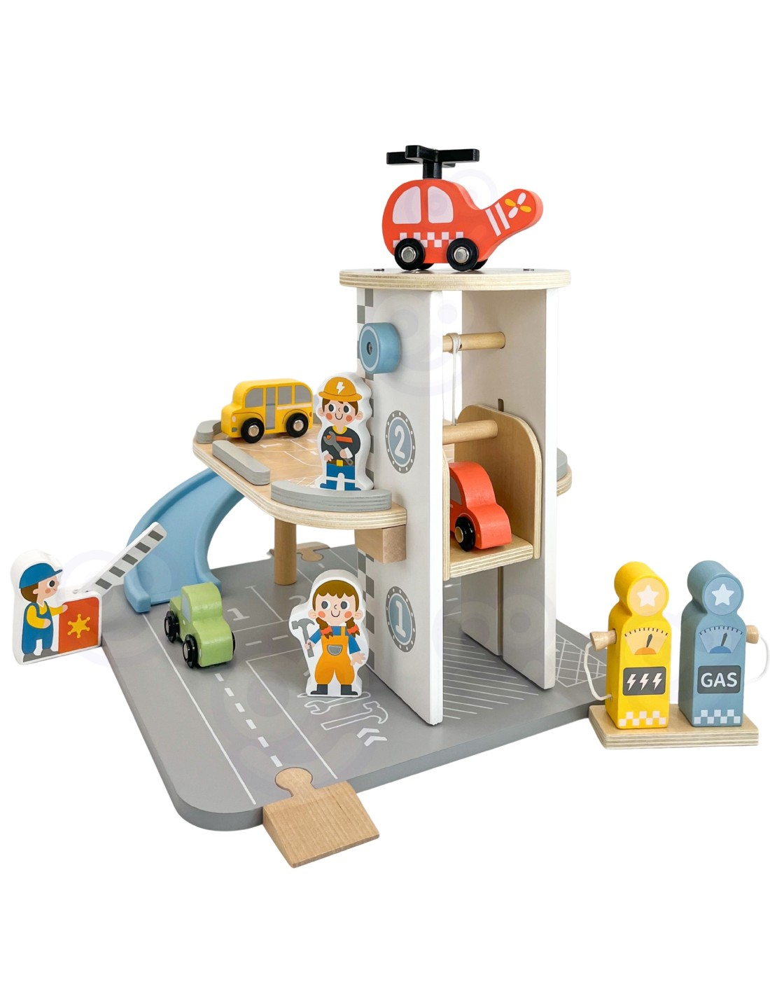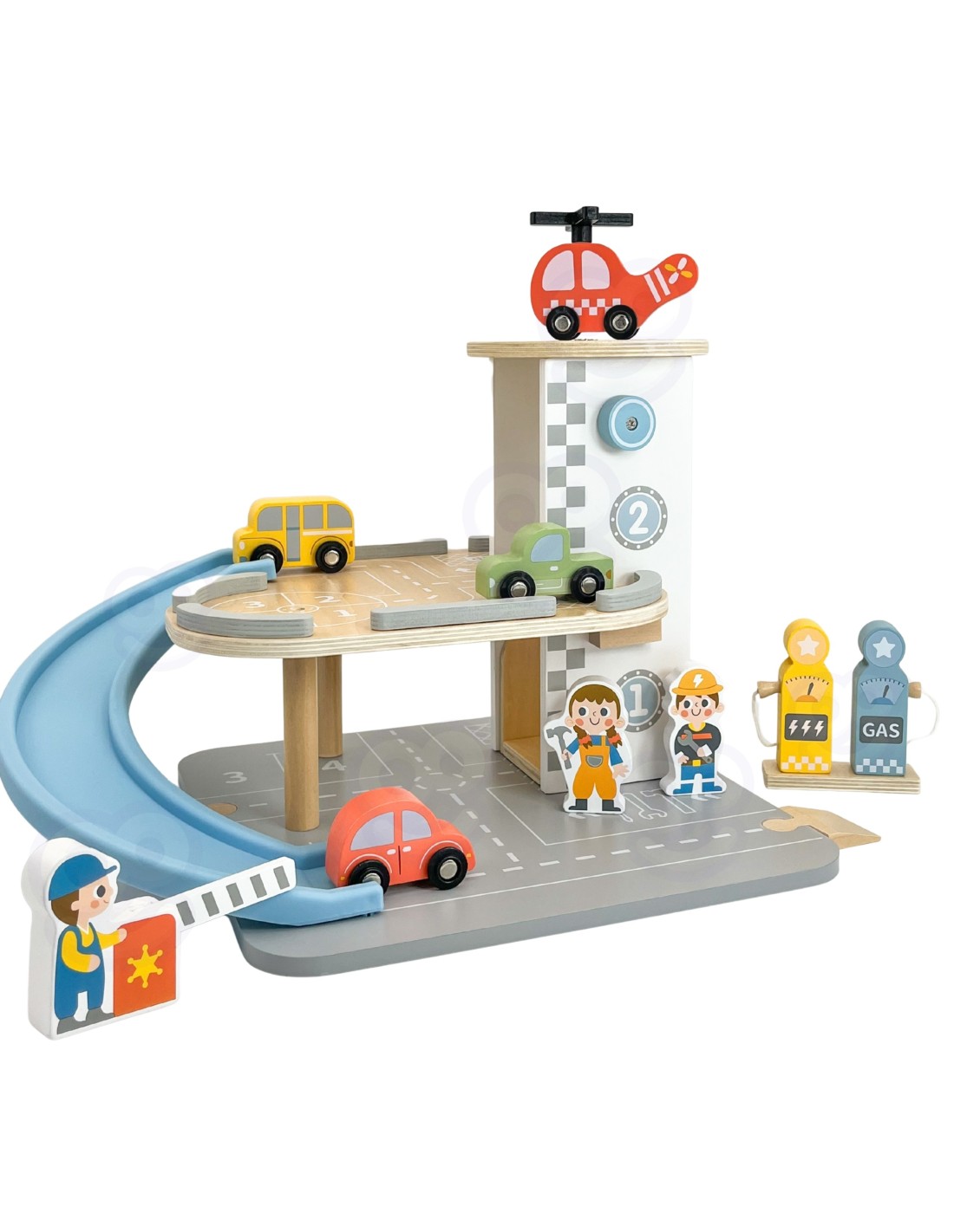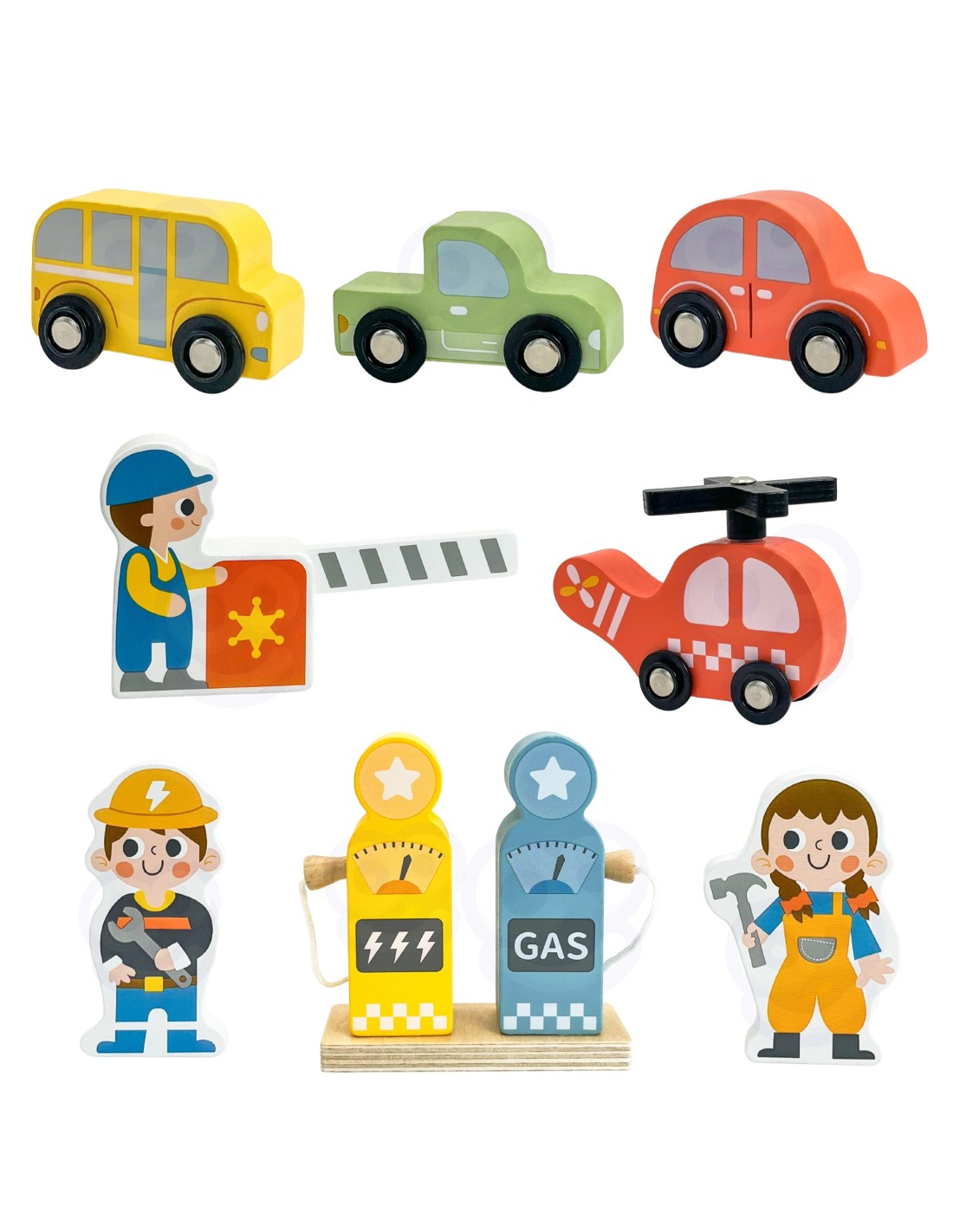 - - Motor Skills - Precisely maneuvering small wooden vehicles along ramps, slides, and parking spaces hones hand-eye coordination and finger dexterity. Positioning figures, manipulating gas station components, and moving the helicopter requires controlled, precise hand movements.