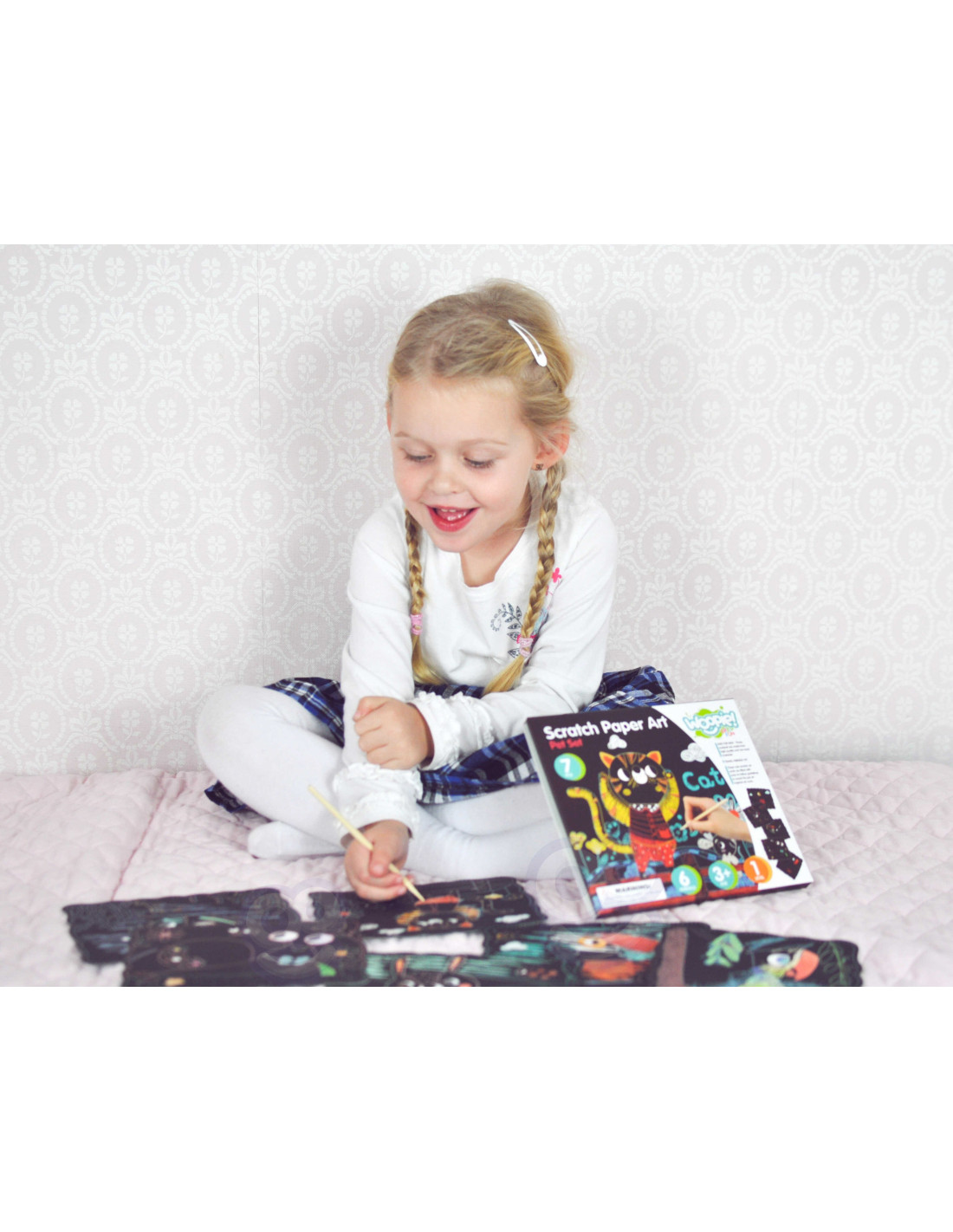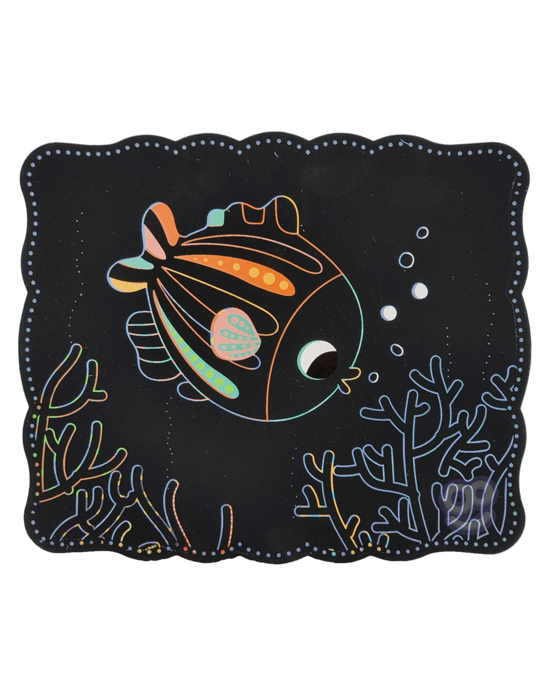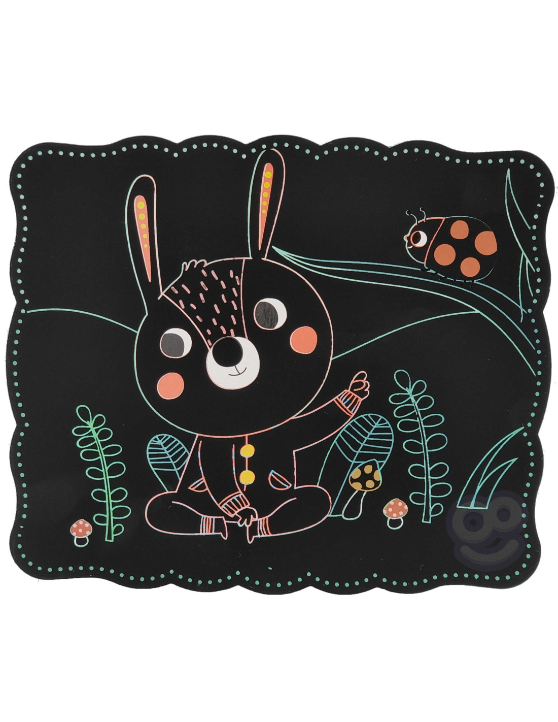 Spark your child's imagination with magical scratching boards from the WOOPIE ART&FUN series! Using a wooden stylus , your child can scratch out new shapes/patterns hidden on the board and then watch as the colors create a unique, cohesive picture with an animal motif ! The set includes 7 pieces, including 6 scratching boards and a stylus. The boards feature images of a cat , a dog , a snail , a rabbit, a fish , and a parrot . The convenient, resealable packaging allows your child to take the set anywhere . This toy develops fine motor skills and sparks creativity and imagination !
