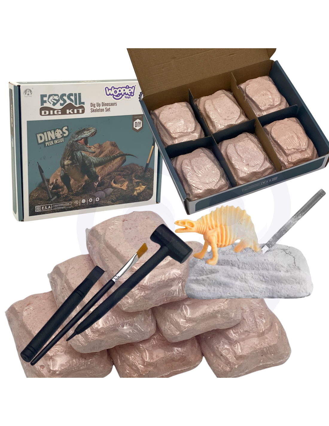 Zestaw Skamielin do kopania od marki WOOPIE to fantastyczny prezent dla dzieci, które interesują się dinozaurami. Zabawka pozwala poczuć się jak prawdziwy paleontolog, wykopując skamieniałości i odkrywając kości dinozaurów. W zestawie znajduje się aż 6 dinozaurów do wykopania! Dzięki dołączonym narzędziom do kopania, stukania, szczotkowania i składania, dzieci mogą spędzić wiele godzin na edukacyjnej zabawie, inspirować się naukami przyrodniczymi i rozwijać swoje umiejętności praktyczne oraz myślenie. Idealny prezent zarówno dla chłopców, jak i dziewczynek!