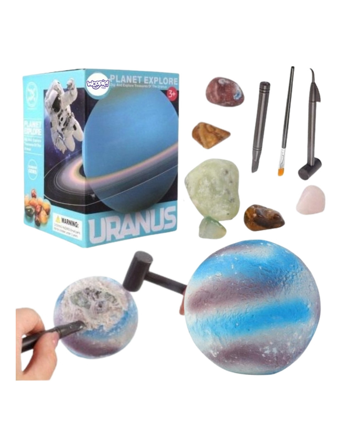 Immerse yourself in the fascinating world of space and uncover the secrets of planet Uranus with the Woopie! Excavation Set, an educational toy that lets kids take on the role of a little explorer and archaeologist. Unearth hidden minerals from the planet model using the included tools and discover unusual gems from around the world.