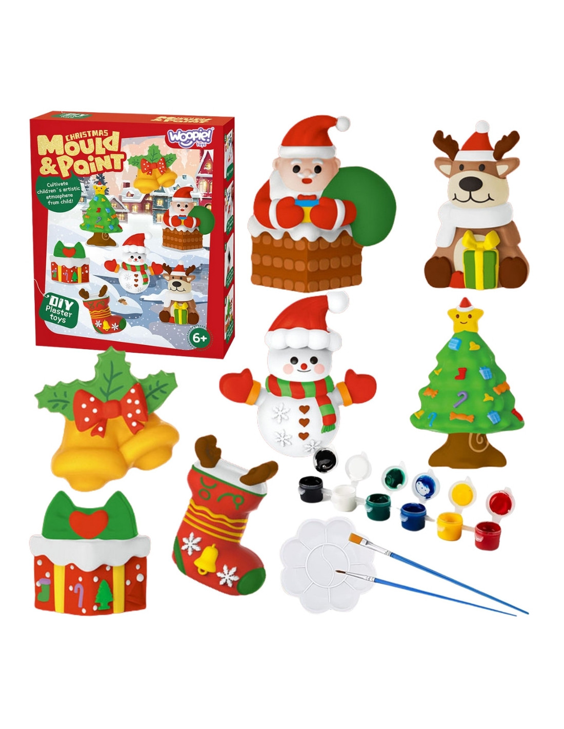 Spark your child's creativity and immerse them in the magical spirit of the holidays with the unique Mold & Paint Christmas DIY kit from Woopie ! This festive art kit allows you to create your own plaster figurines – simply use a mold, mix the plaster, pour it into the molds, and once dry, paint the finished shapes according to your own ideas.