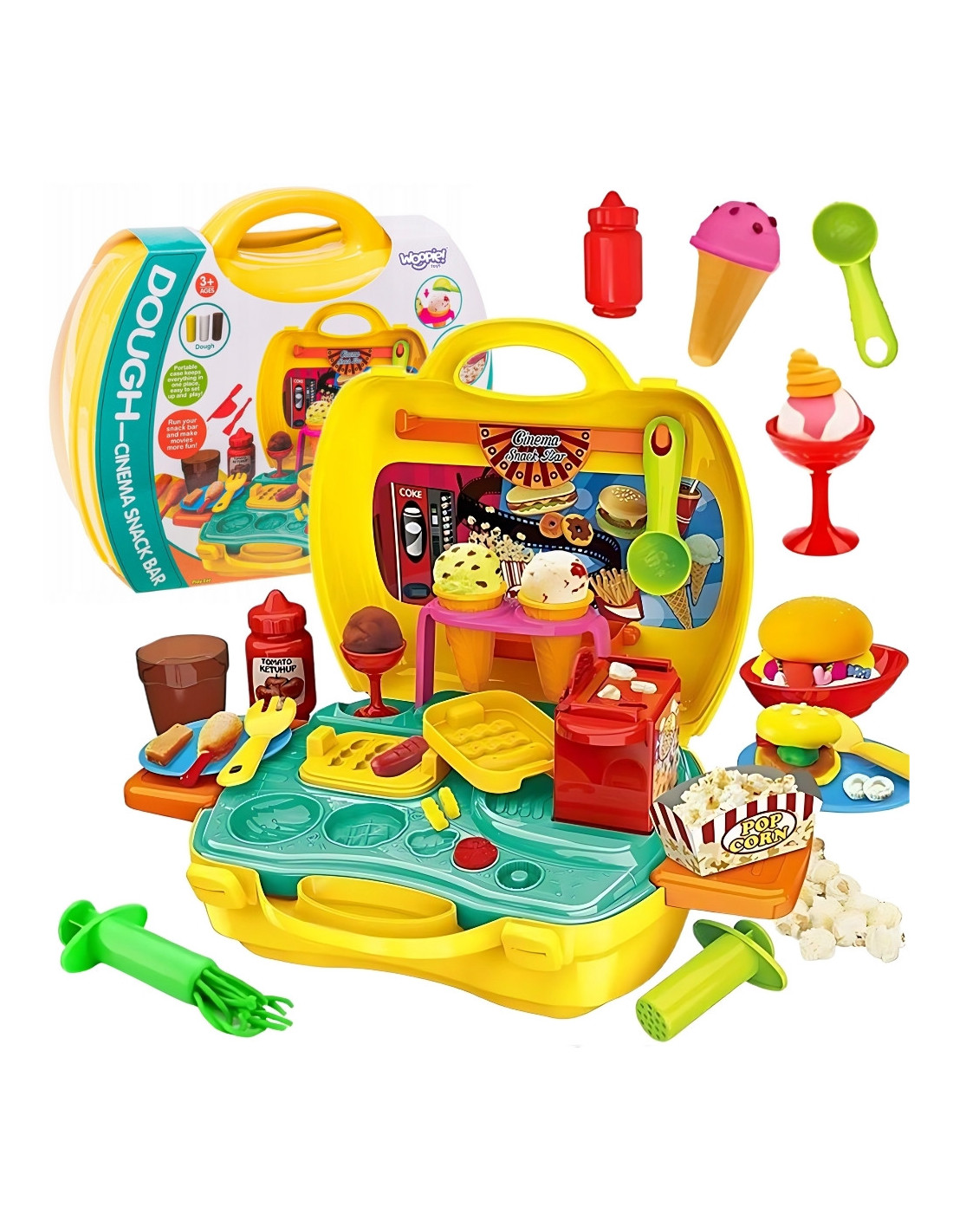 The Woopie snack bar set is a dream come true for every little foodie and aspiring chef. This charming, portable snack bar playset will allow your child to spend time creatively while developing their manual skills and imagination. Compact and housed in a convenient carrying case, it's perfect for playtime at home, with friends, or on the go. Simply open the case and the bar can be set up in seconds and begin a culinary adventure. A wealth of accessories guarantees hours of engaging play. Children can take on the role of a chef, salesperson, or customer, creating their own scenarios and dishes. The set allows them to prepare their favorite snacks, such as ice cream, fries, hamburgers, or popcorn. Simply mold the shape of the desired product from play dough and then serve it on a plate or in special packaging. High-quality craftsmanship and safe materials ensure safe and long-lasting entertainment. It's a perfect gift idea that will surely delight any child and bring them lots of joy.