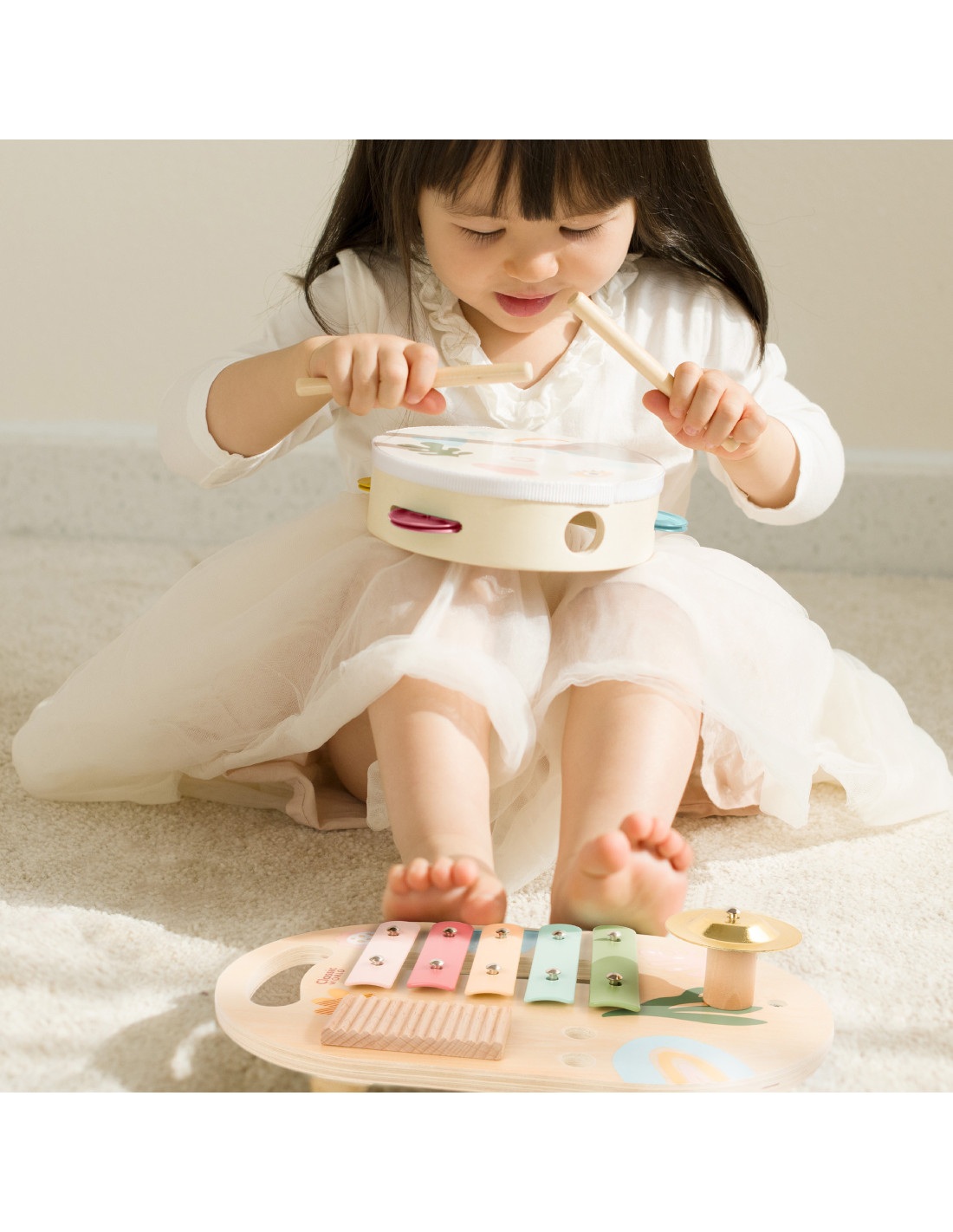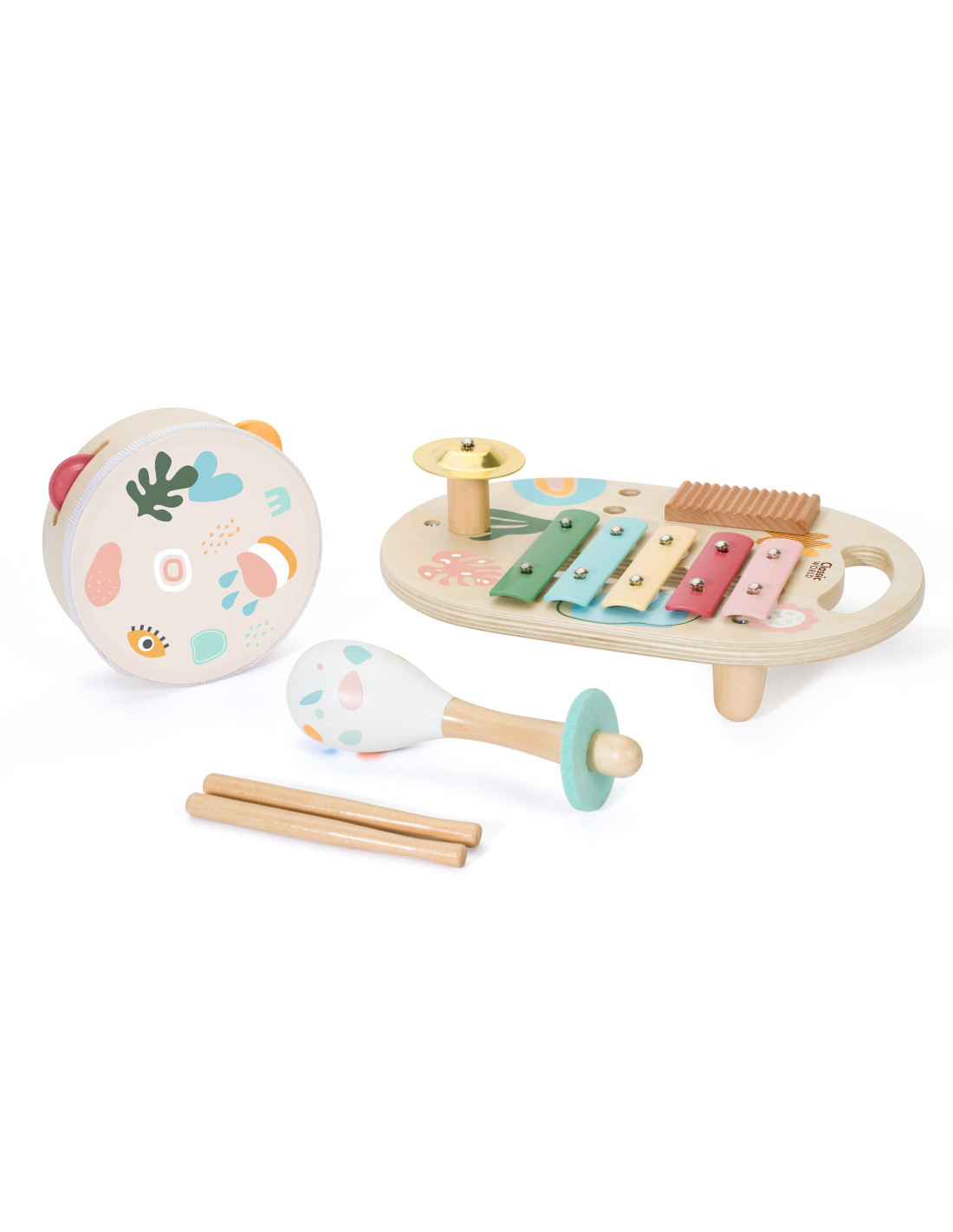 Explore the world of music with the Classic World Musical Instruments Set. This toy lets your child explore the world of music and sound in an easy and enjoyable way, from a young age. The instruments fit perfectly into little hands. All included instruments are painted in beautiful colors with animal and nature motifs. This toy develops musical skills, creativity, and imagination .