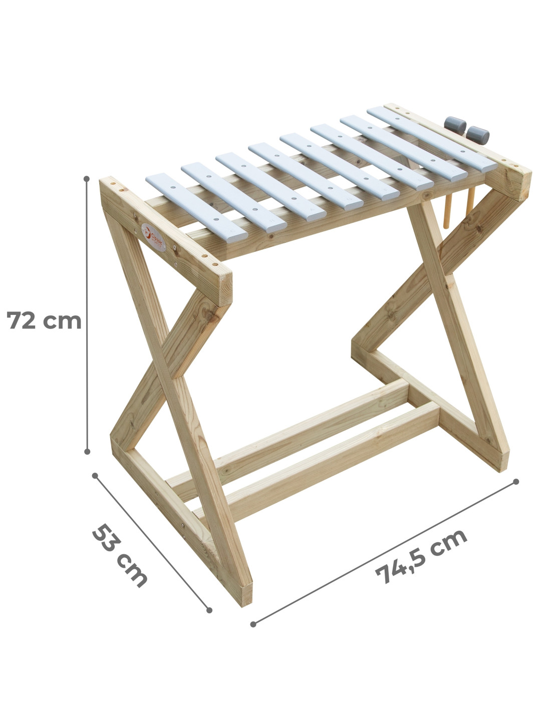 Metalofon od marki CLASSIC WORLD z serii EDU sprawią, że dowolne miejsce na świeżym powietrzu np. ogród czy plac zabaw, wypełni się muzyką! Urocze urządzenie, które pomaga dzieciom rozwinąć swoja muzyczna kreatywną stronę! Ten wspaniały instrument to świetny sposób dla dzieci w każdym wieku na komponowanie harmonii i rytmów. Dodatkowo stwarza okazje do wyrażenia siebie podczas komponowania - wpłynie pozytywnie na śmiałość i pewność siebie u dziecka. W komplecie znajdują się 2 młoteczki, które można wygodnie odłożyć po boku. Wykonane z wysokiej jakości drewna odpornego na warunki atmosferyczne, pochodzącego ze zrównoważonych źródeł.
