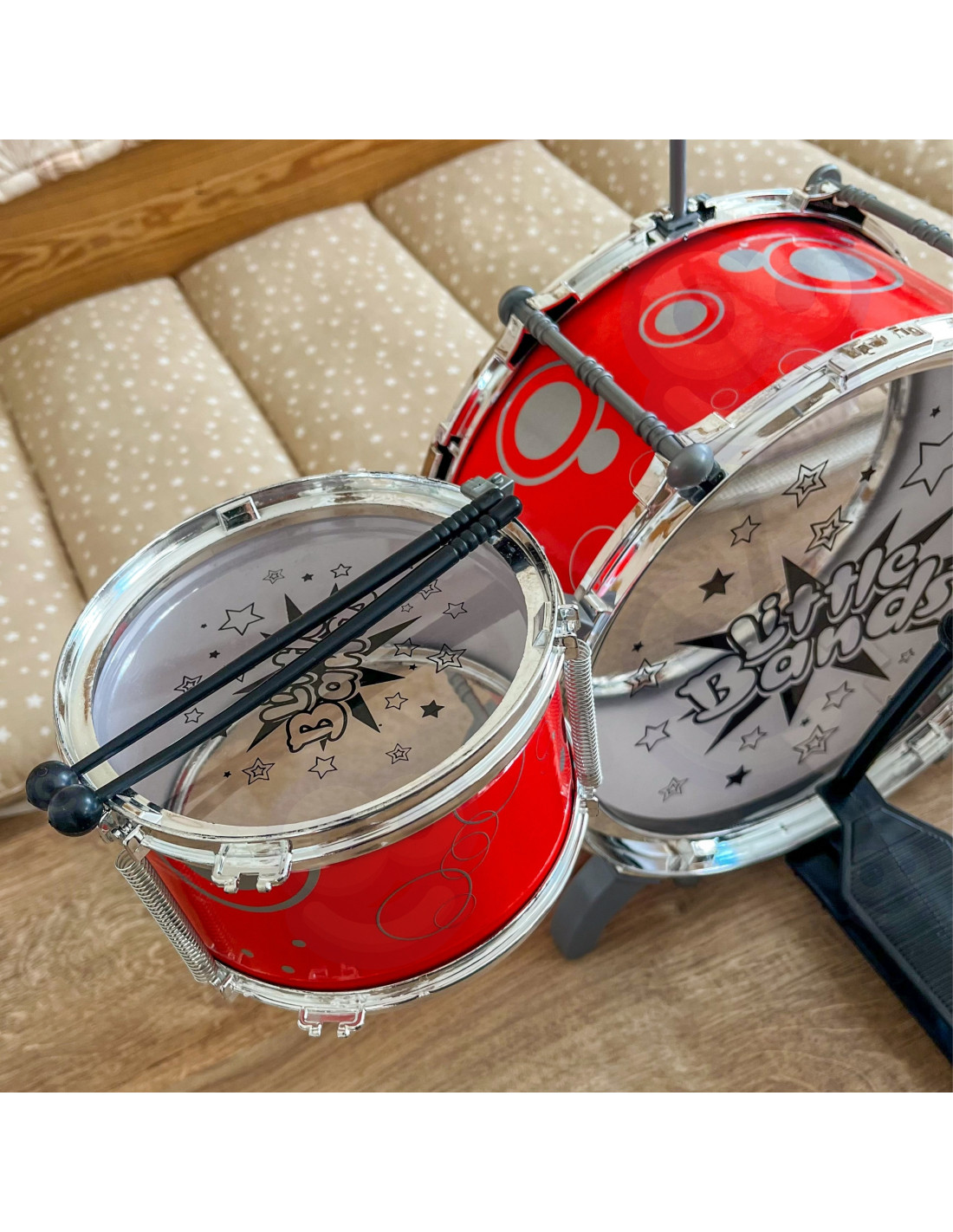 This unique drum set from Woopie is the perfect gift for little music lovers who dream of becoming a rock star. Easy to assemble , it provides hours of creative play . It develops musical talent, a sense of rhythm, and motor coordination. It's a great way to introduce your child to the world of music!