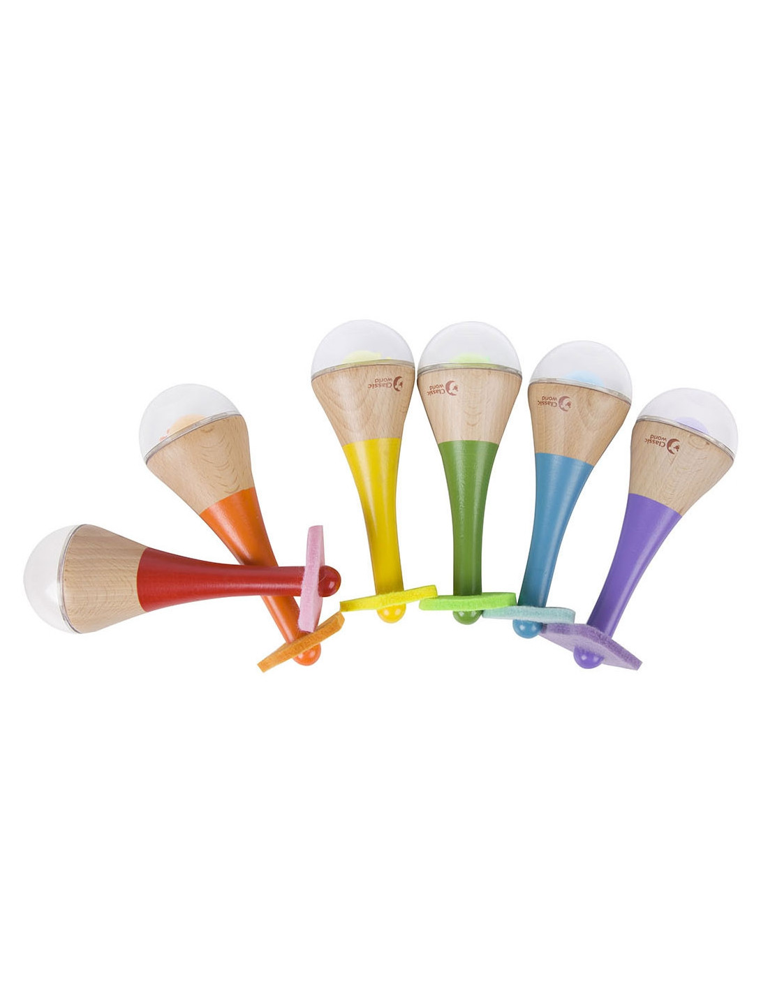 CLASSIC WORLD Grzechotka 2w1 Drewniany Instrument Tęczowy Marakas 1 szt.