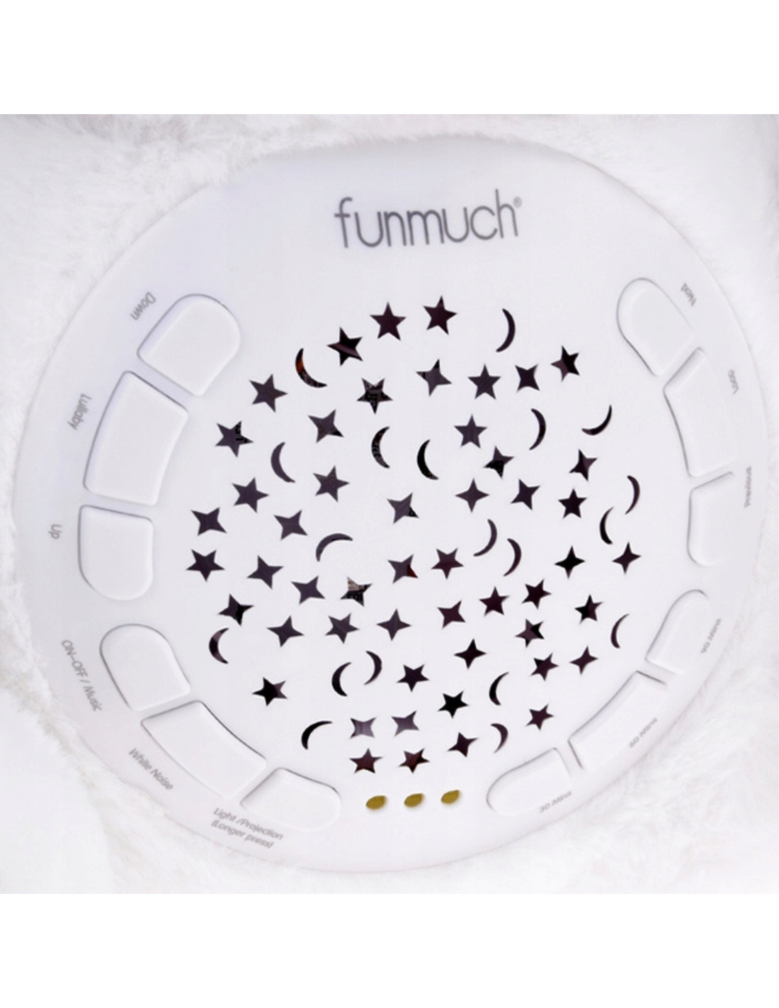 The soft Polar Bear with Projector from Woopie is the perfect sleep companion for every little one. This adorable cuddly toy, made of safe cotton fabric , combines the functions of a light projector and a soothing sound with music . The bear helps soothe your baby to sleep by projecting a starry sky with moons onto the ceiling in 7 different light effects . The sound module offers a wide range of calming sounds: 10 gentle lullabies and 5 types of white noise . The module has a built-in timer with three time options (30, 60, or 90 minutes) and a loop function for continuous playback. An additional advantage is that the bear is machine washable (after removing the electronic module).