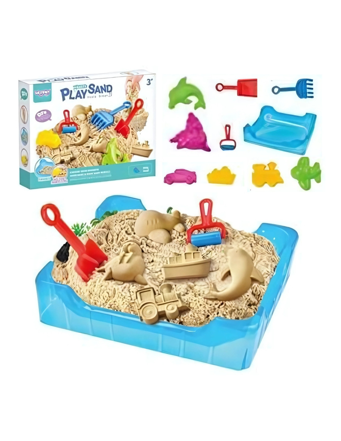 Discover the fascinating world of creative play with Woopie Magic Kinetic Sand ! This wonderful set is the perfect way to develop children's imagination and manual skills. The sand feels great, is incredibly soft and pleasant to the touch , and thanks to its unique properties , it doesn't crumble or get dirty , guaranteeing hours of pure fun. Create amazing structures, adorable sea creatures, vehicles, or other imaginative shapes – the possibilities are endless! The handy container doubles as a sandbox, making this set ideal for indoor play, regardless of the weather.
