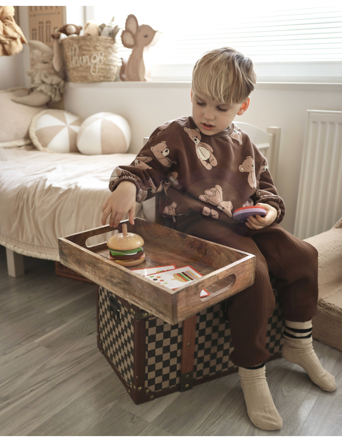 The Wooden Burger from WOOPIE GREEN is a delicious dose of educational fun for every little chef! This set allows children to recreate burger designs from cards or create their own creations. Thanks to the colorful ingredients and illustrated cards, little ones learn logical thinking, develop concentration, creativity, and memory. An additional attraction is the role-playing option – children can take on the role of a chef and serve delicious dishes to their guests!