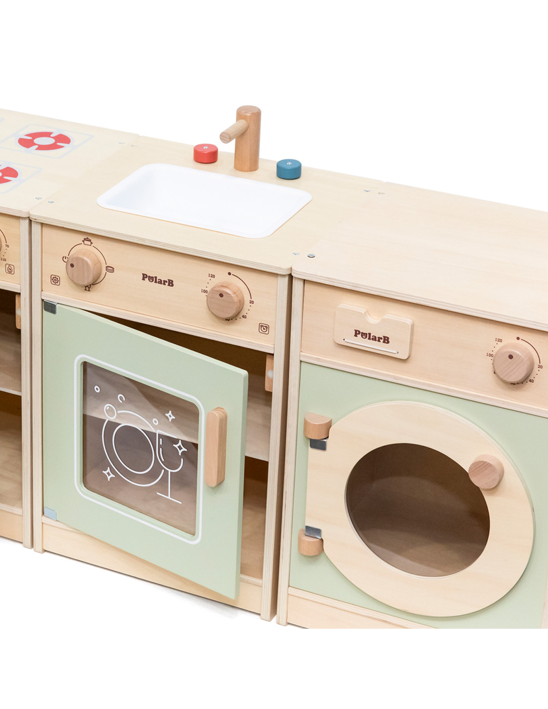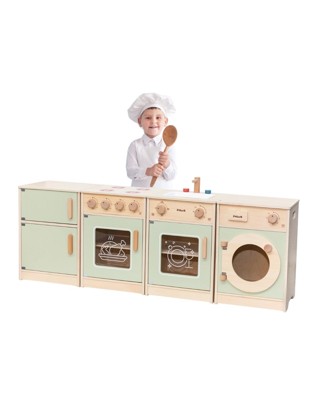 VIGA PolarB Wooden Kitchen Set XL Washing Machine, Stove, Dishwasher - Green
