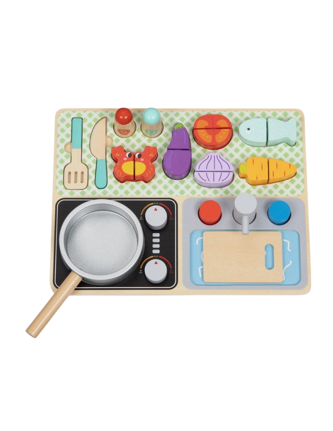 Turn ordinary play into a true culinary adventure! This colorful wooden kitchen set is perfect for little cooking enthusiasts. Safe, solidly constructed components will make your child feel like a real chef!