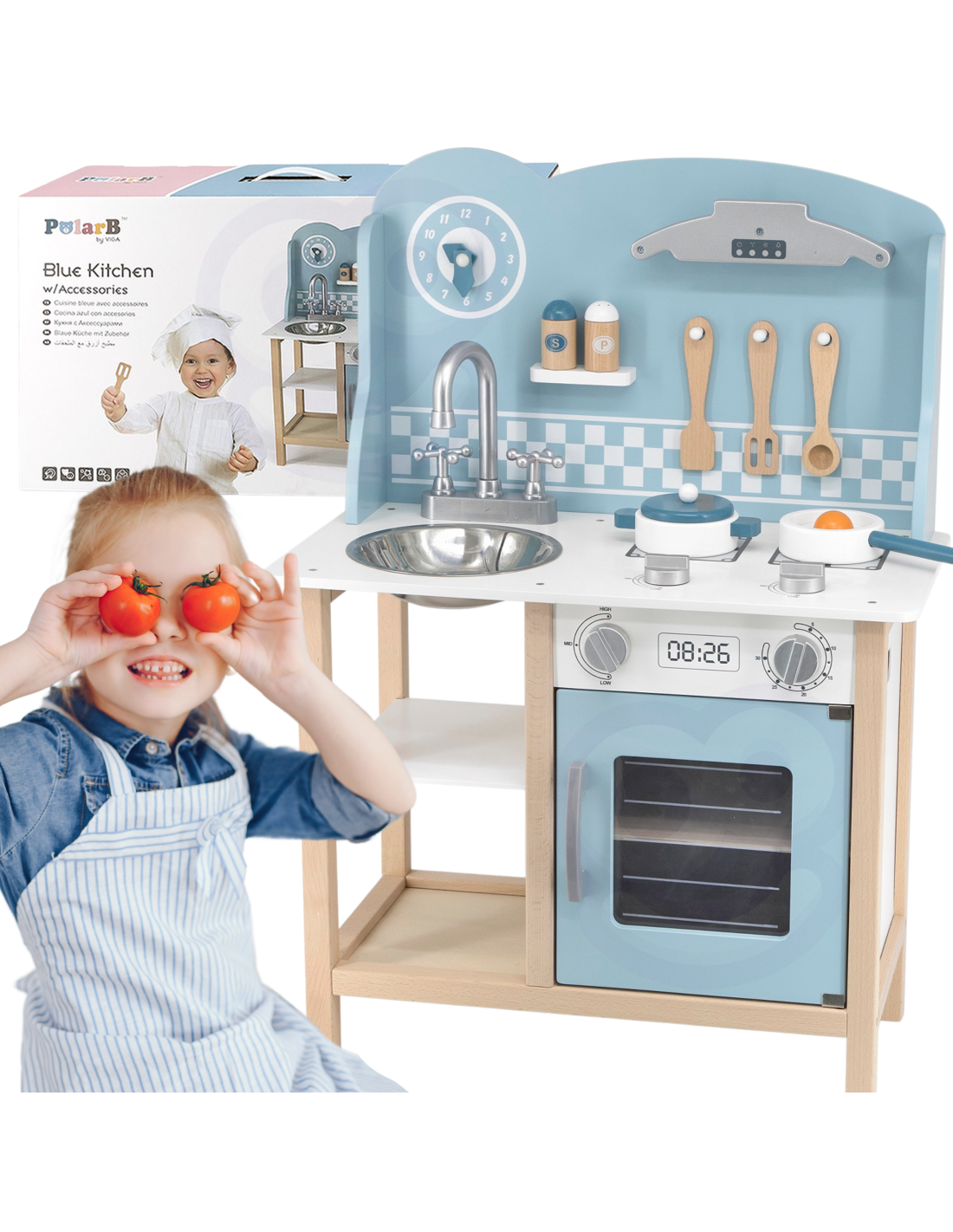 VIGA PolarB Wooden Kitchen with Accessories Silver - Blue