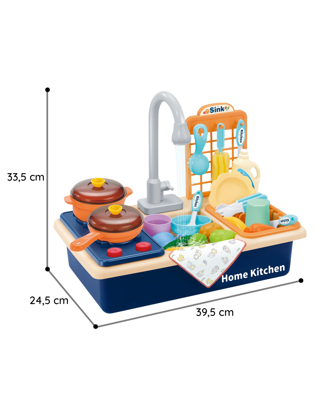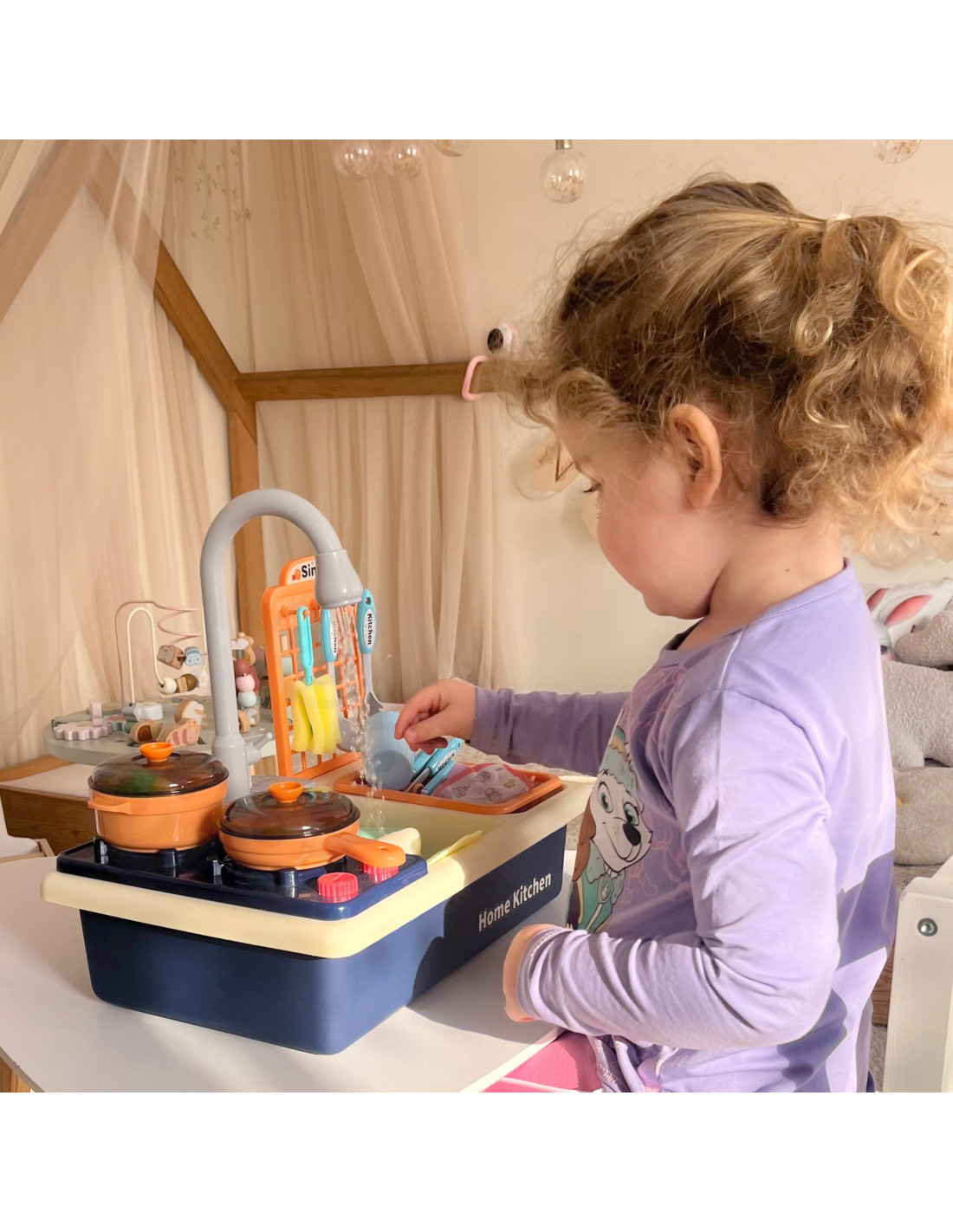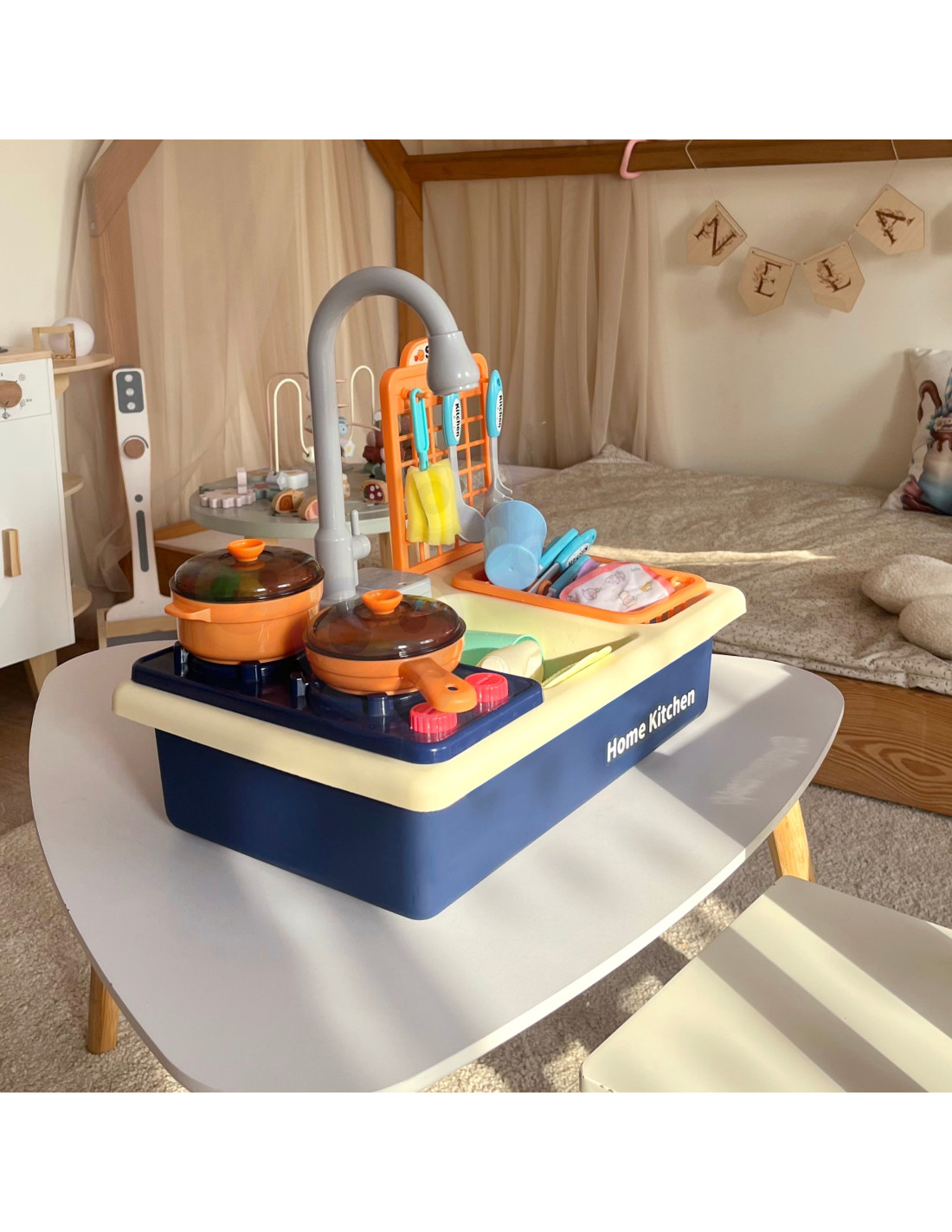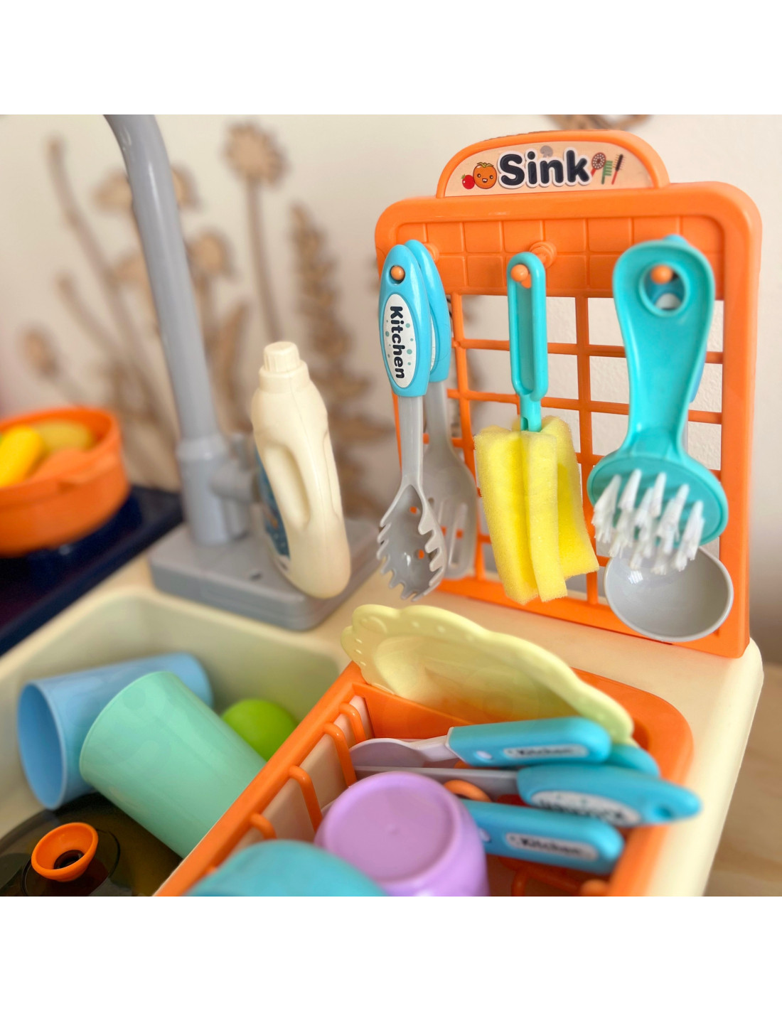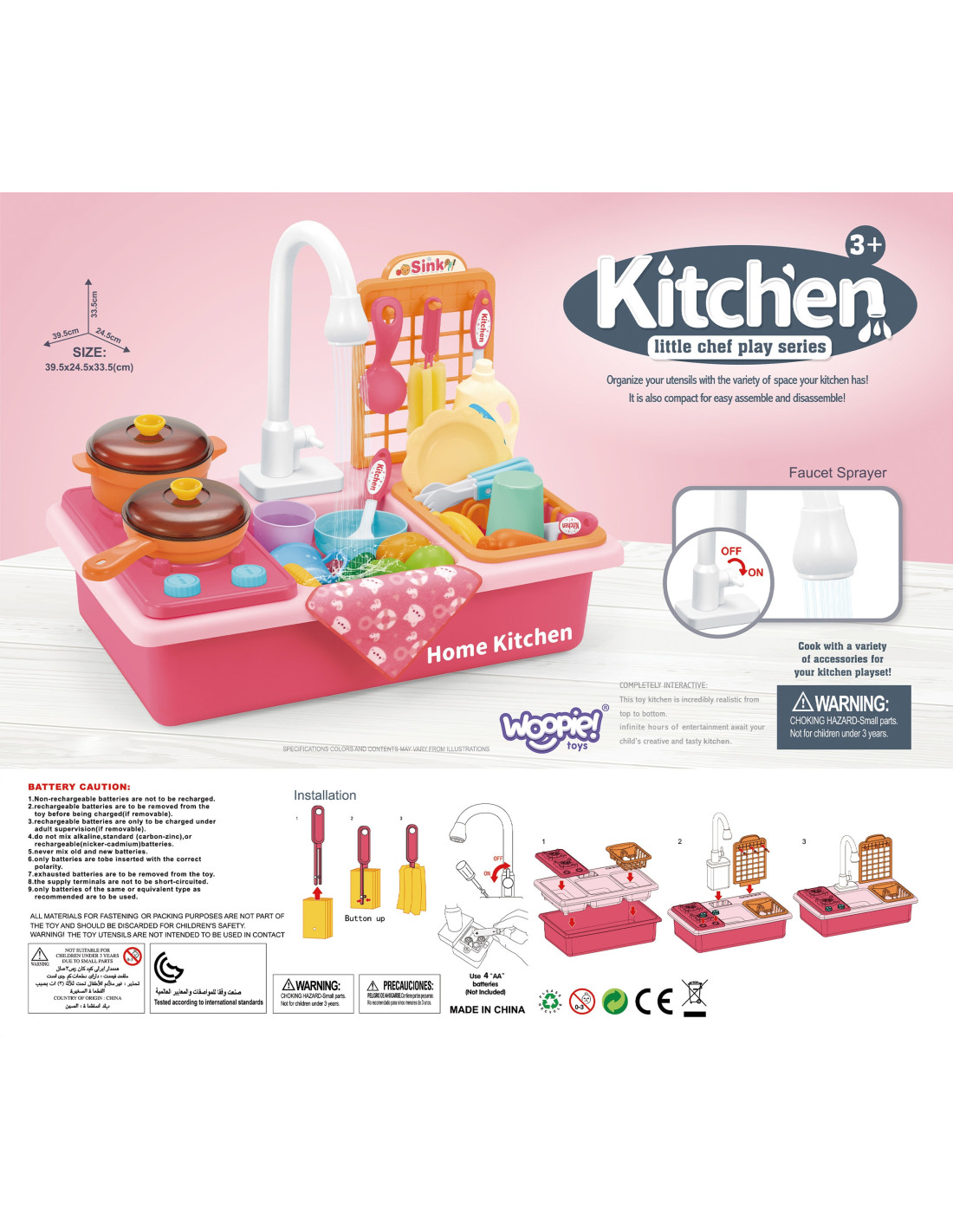Zlewozmywak Kuchenka 2w1 od marki WOOPIE pozwoli dzieciom gotować i zmywać naczynia tak jak ich rodzice - naśladować od najmłodszych lat! Zabawka jest doskonale odwzorowana, dzięki czemu dziecko ma wrażenie, że wykonuje prawdziwe czynności kuchenne. Posiada ruchome elementy jak kurki od kuchenki oraz kran, z którego leci prawdziwa woda. Wystarczy wlać do misy wodę i zobaczyć jak dziecko się bawi, a po wszystkim wystarczy opróżnić dolną misę. Dodatkowo, zestaw zawiera wiele akcesoriów jak garnki i artykuły spożywcze. Zabawa w gotowanie, zmywanie naczyń i wykonywanie podobnej pracy, pomaga dzieciom nabrać poczucia odpowiedzialności i samodzielności.