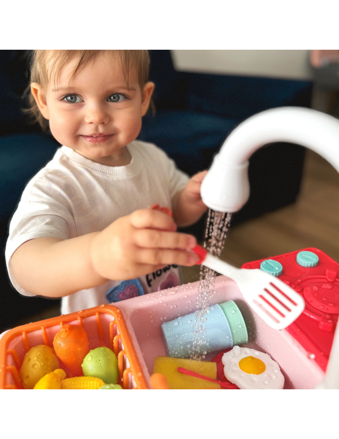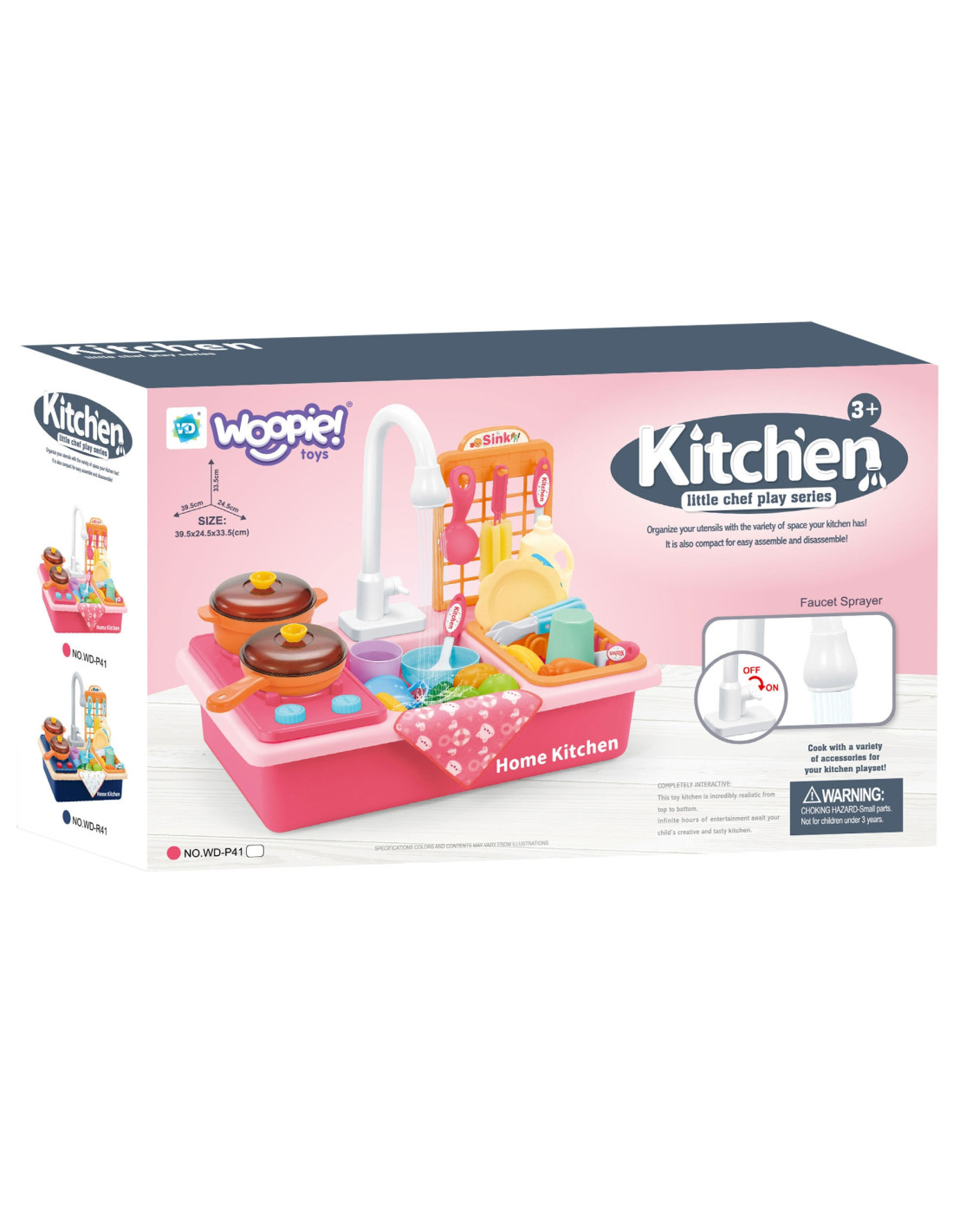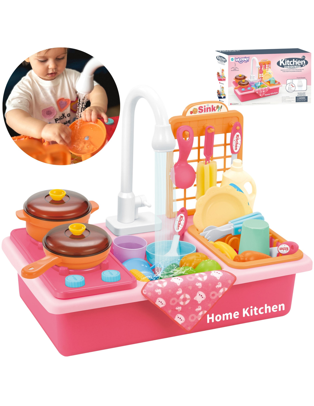 The 2-in-1 Kitchen Sink and Cooker from WOOPIE will allow children to cook and wash dishes just like their parents – imitating them from a young age! This toy is perfectly replicated , giving children the impression of performing real kitchen tasks. It features moving parts like stove taps and a faucet that spouts real water . Simply pour water into the bowl and watch your child play, and when it's done, simply empty the lower bowl. The set also includes many accessories, such as pots and pans . Playing with cooking, washing dishes, and similar tasks helps children develop a sense of responsibility and independence .