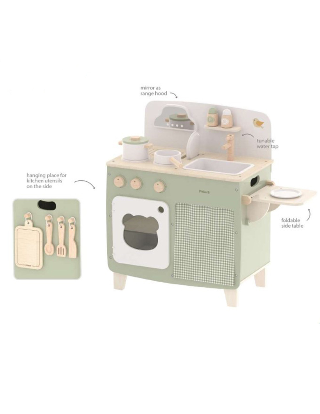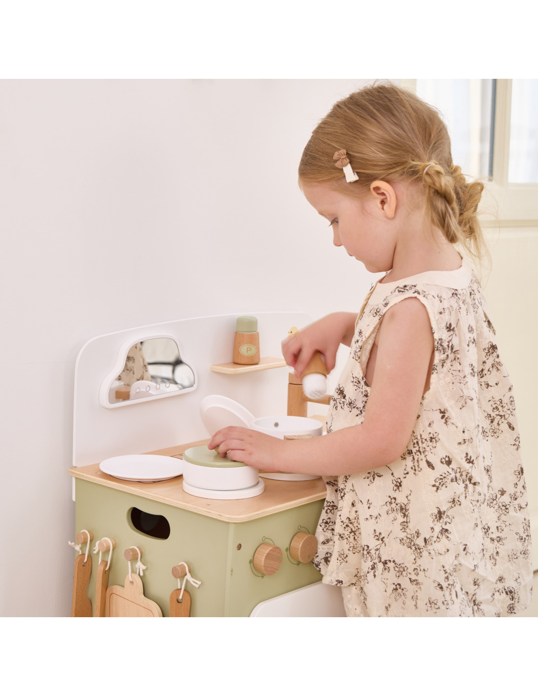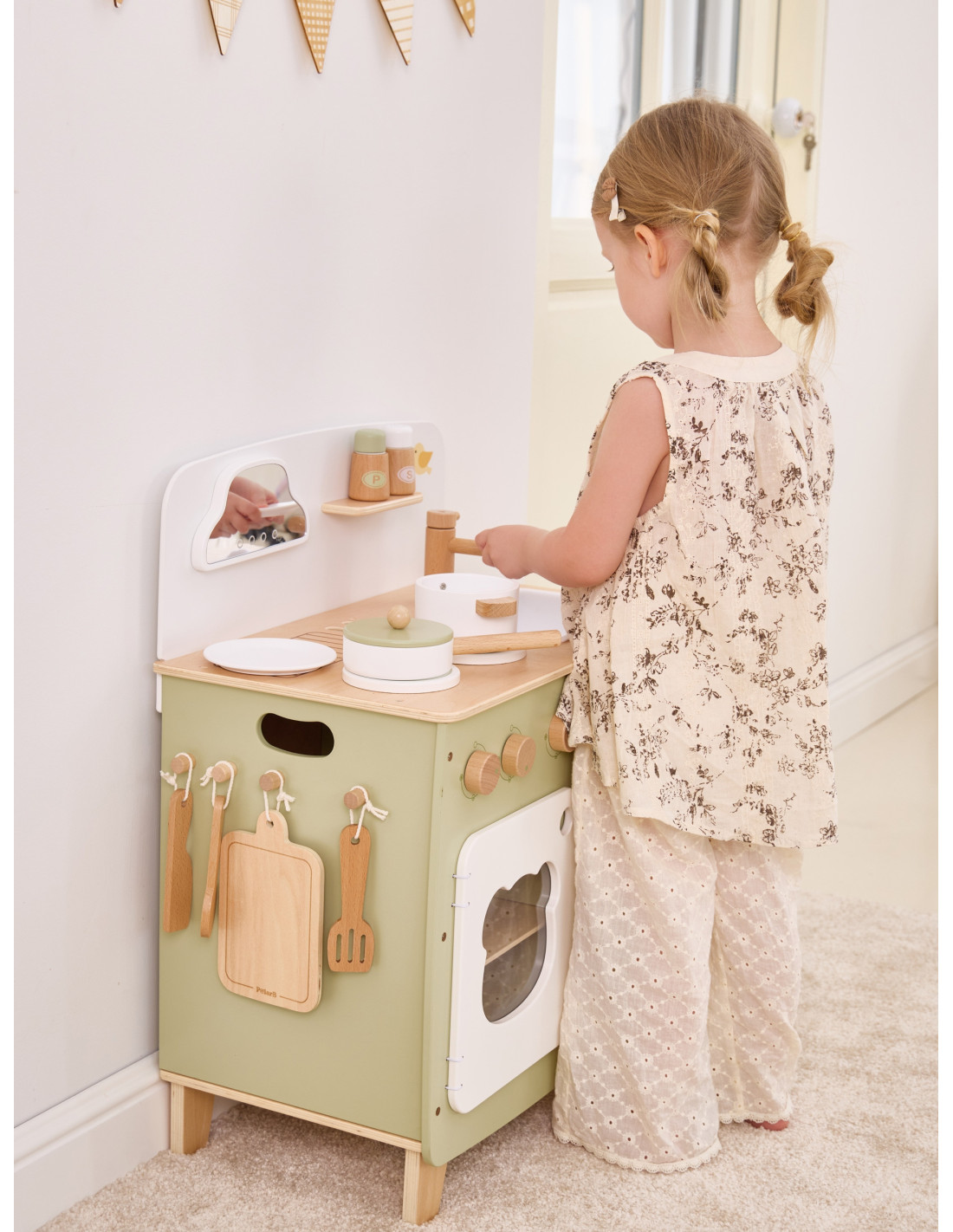 This charming wooden kitchen from the renowned Viga brand is a great idea for a durable and durable toy for your child. The kitchen is designed to make your child feel like a real chef! A mirrored hood, stove, and oven are just the beginning of the toy's amenities. Children learn to use kitchen tools, develop creative thinking, and develop their imagination while playing.