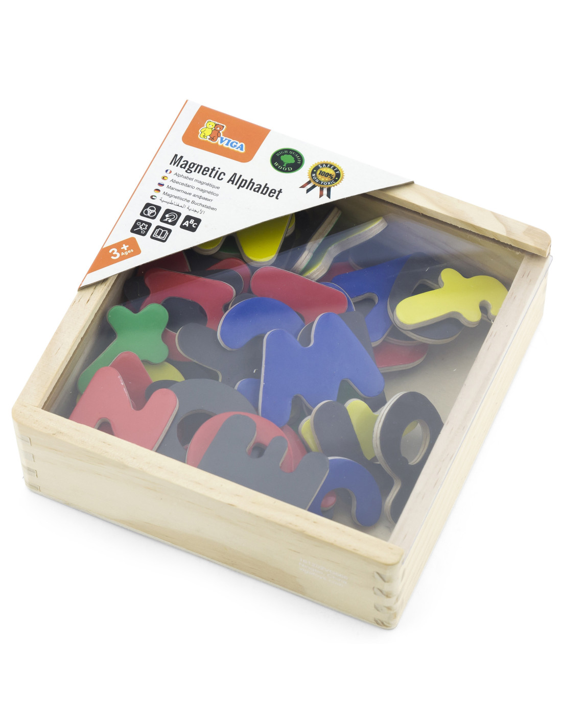 - - literki magnetyczne są zapakowane w estetyczne, drewniane pudełko z przeźroczystą akrylową szybką co ułatwia przechowywanie i jest idealne na prezent,