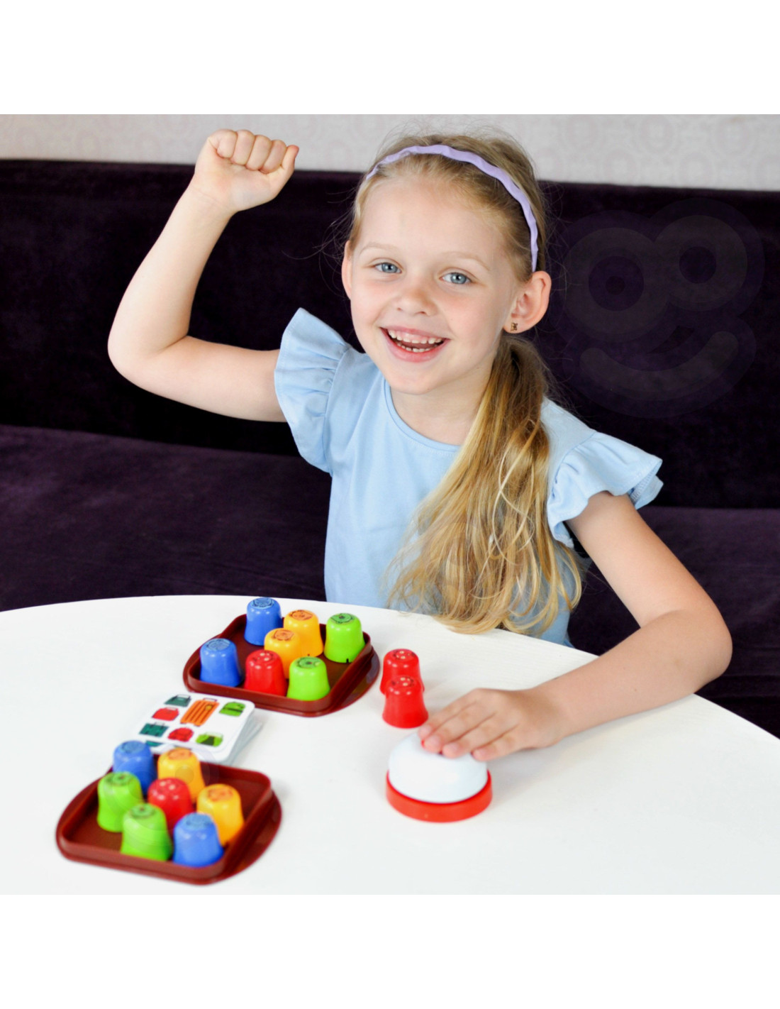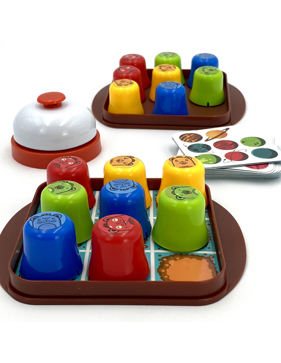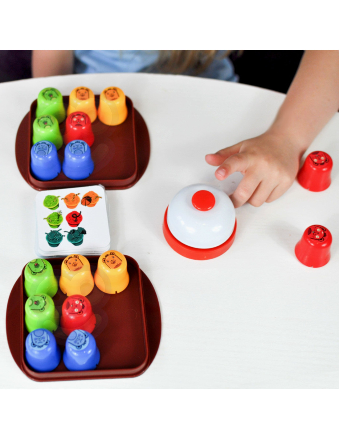 The goal of the game is to complete the pattern shown on the colored card as quickly as possible. Each player has one move. The player who completes the pattern on the card first rings the bell and wins the game.