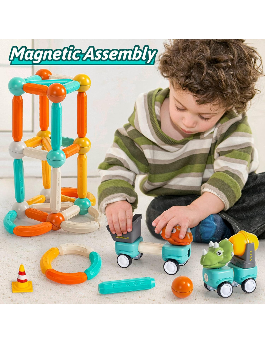 This set of magnetic blocks from WOOPIE is a great gift idea for a child! It's a creative and imaginative way to kill boredom. With them, you can create not only flat shapes but also 3D shapes and animals, and you can even teach your child to count by arranging numbers with them! The possibilities are virtually endless. Create a world from your own imagination, solve spatial puzzles, and develop! The set includes mini dinosaur cars that will diversify the fun and introduce your child to a new dimension of building structures. The set's components have built-in magnets, which allow for easy connection of the building blocks, so children will surely be able to assemble it. The vibrant colors and large size of the set will enrich the fun with new experiences.