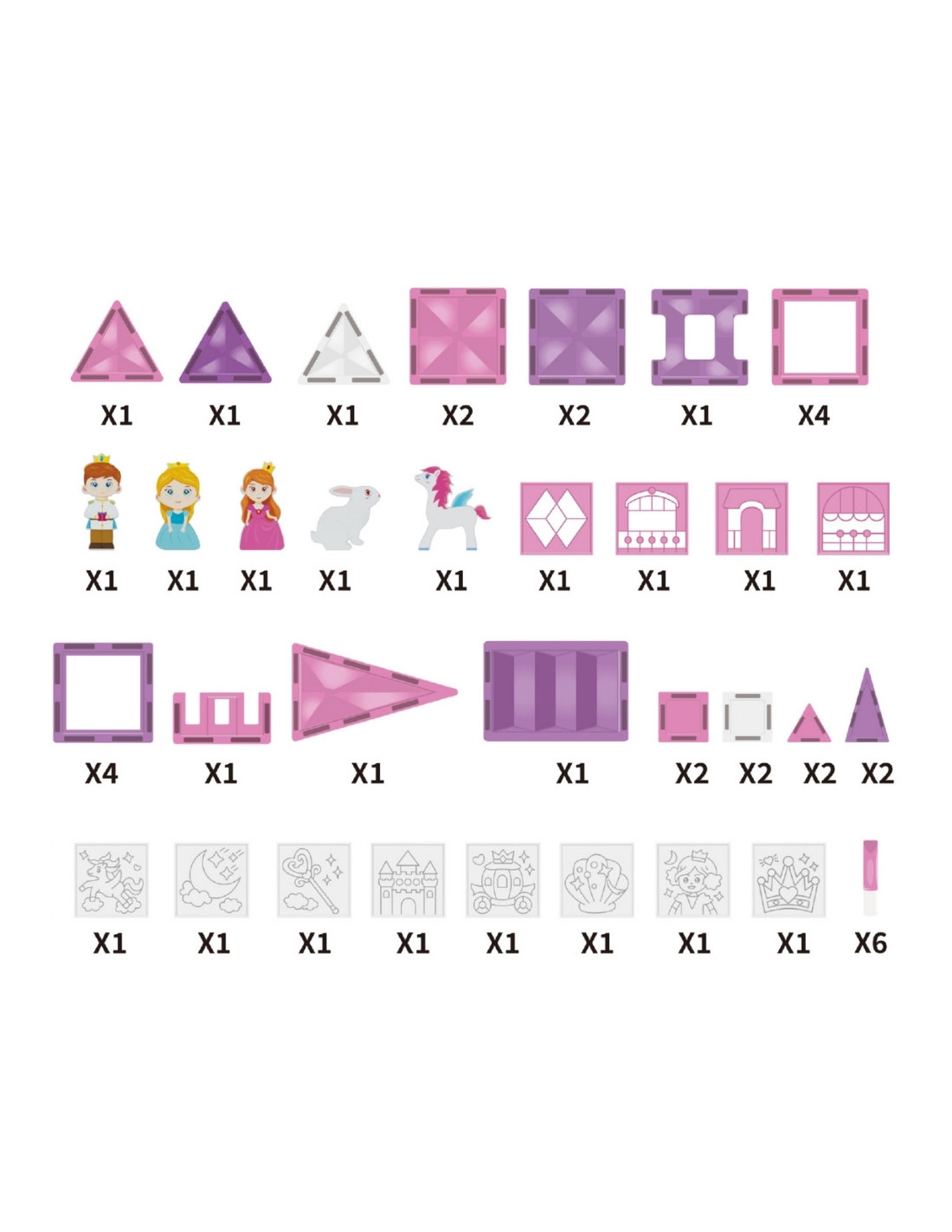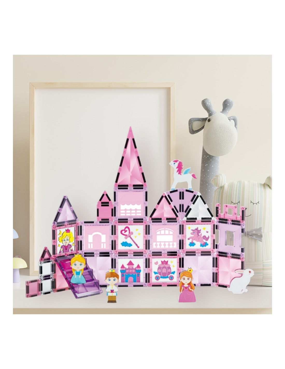 Spark your child's imagination with this set of magnetic building blocks , designed for little lovers of princesses, unicorns, and fairytale lands. This unique set consists of 58 precisely crafted pieces with various shapes and functions – all equipped with built-in magnets for quick, durable, and safe connections. It's the perfect combination of creative play and education, developing manual skills, logical thinking, and spatial imagination.