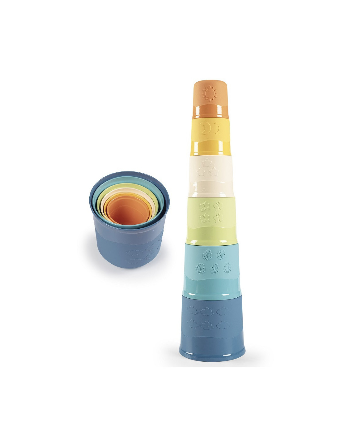- - elements/cups can be arranged like a tower (one on top of the other) or inserted one into the other,