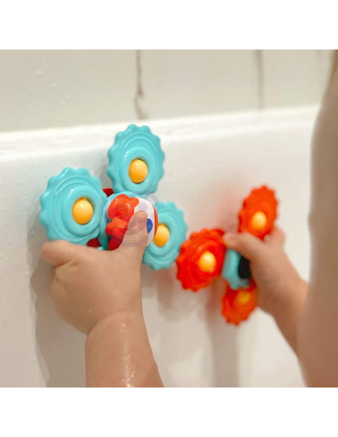 This set of 3 spinning spinners from WOOPIE is an interactive and colorful toy for your child. Each toy is unique and features 2, 3, or 4 arms , respectively. They can be attached to smooth surfaces, further enhancing play possibilities. Made of safe materials , they can also be used as a teether for your baby. Thanks to their various ridges and depressions, they perfectly stimulate the child's senses and motor skills.