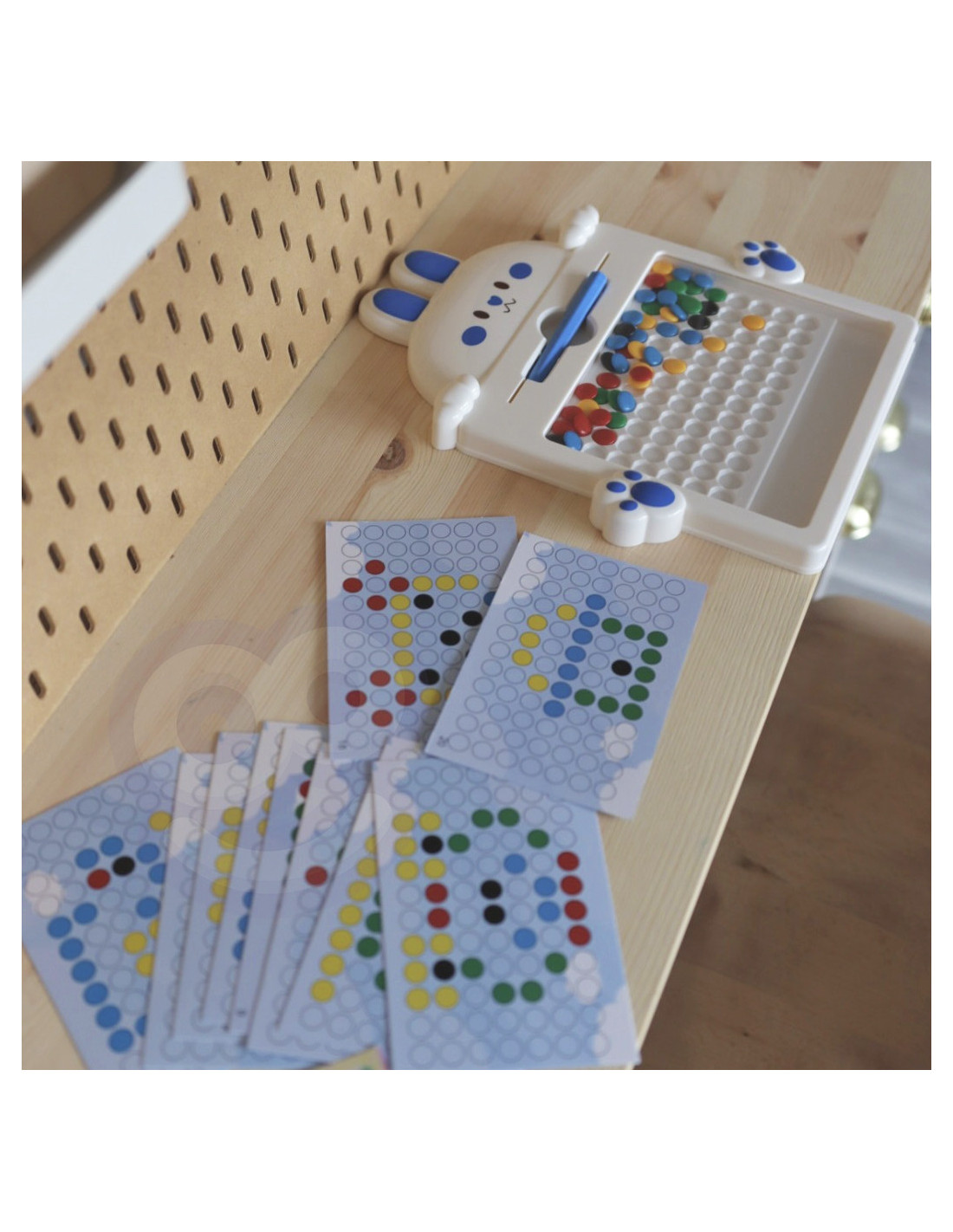 The MagPad Magnetic Board from WOOPIE opens the door to a world of creativity and education for your child. This unique board allows your child to create unique patterns and mosaics . In addition to the board itself, the set includes a magnetic marker , 50 magnetic buttons for creating, and 20 patterns on 10 double-sided cards. The only limit is their imagination and creativity – your child can freely create patterns based on their own ideas. The buttons are strong and durable , and assembly is intuitive and simple . This set is not only fun but also an excellent tool for learning and developing manual skills, concentration, and imagination.