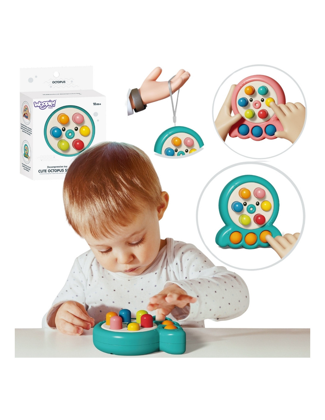 The WOOPIE brand's "Knock the Mole" skill game is a fantastic game that develops reflexes, observation skills, manual dexterity , and visual acuity . The goal is to knock out the moles that appear in various locations as quickly as possible. Start the fun and save the carrot crop from the moles! The toy has an attachable string that will help your child easily carry the toy.