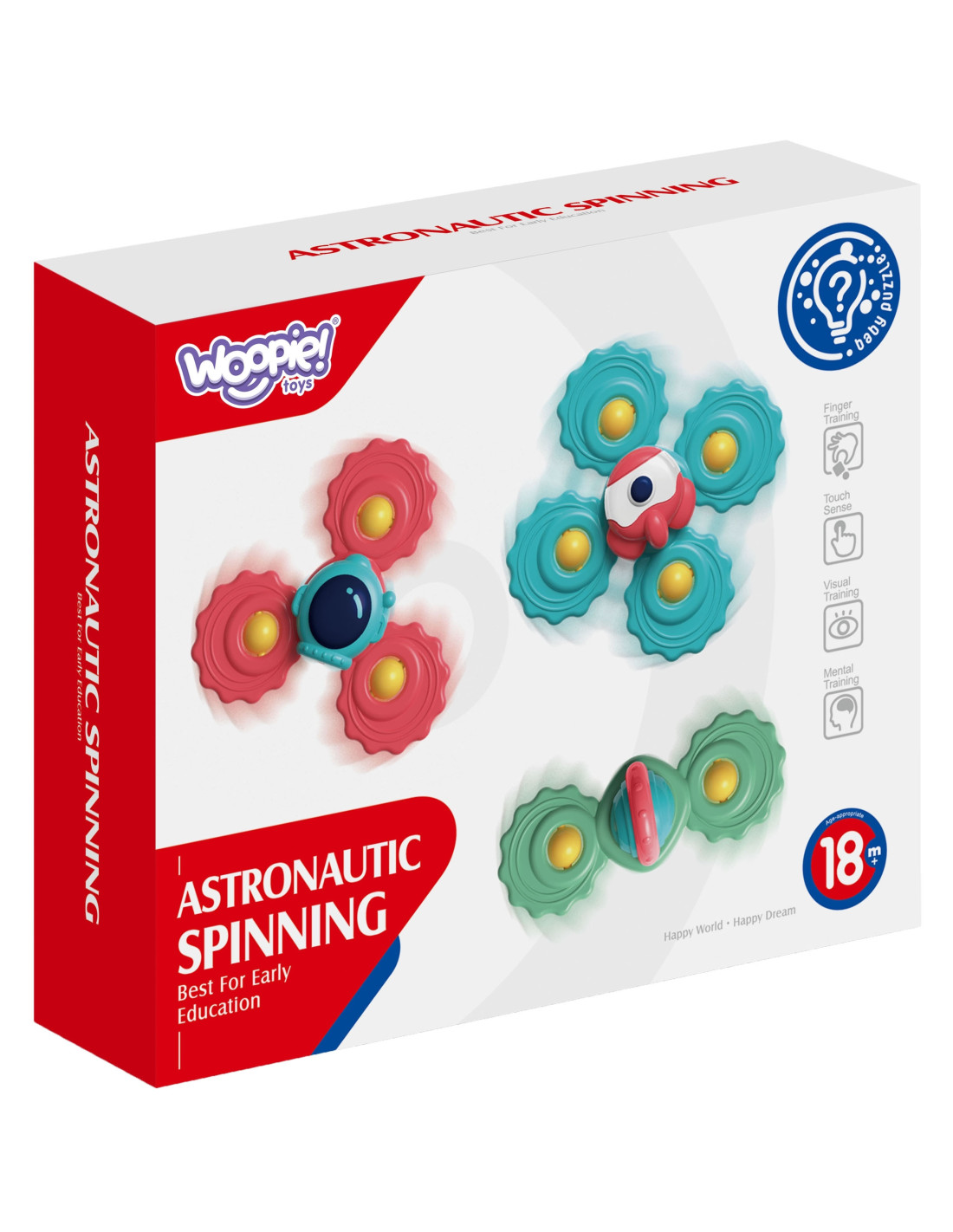 This set of 3 spinning spinners from WOOPIE is an interactive and colorful toy for your child. Each toy is unique and features 2, 3, or 4 arms , respectively. They can be attached to smooth surfaces, further enhancing play possibilities. Made of safe materials , they can also be used as a teether for your baby. Thanks to their various ridges and depressions, they perfectly stimulate the child's senses and motor skills.