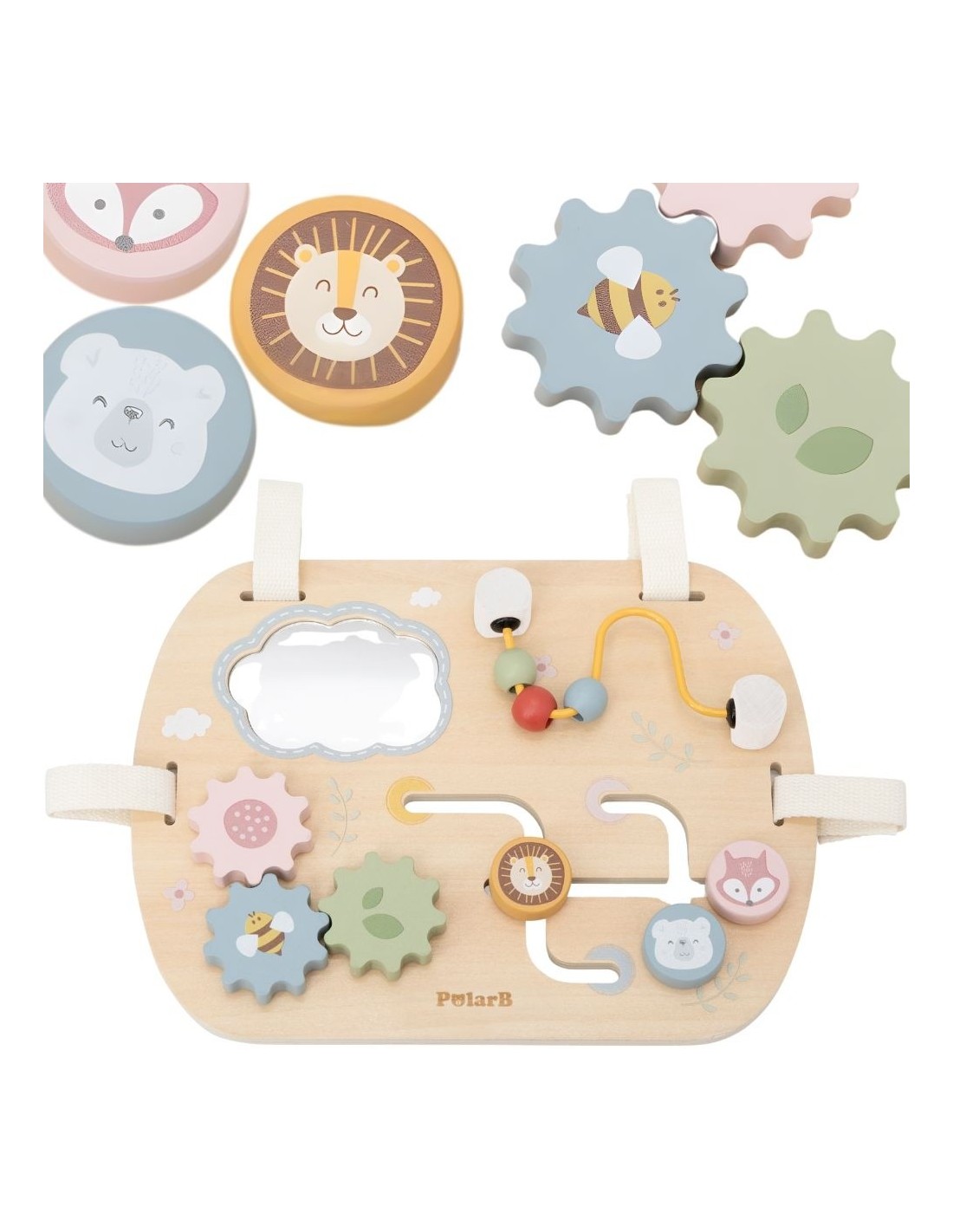 The PolarB wooden manipulative board from Viga is the perfect educational toy for the youngest explorers. It features engaging elements – a mirror, a bead maze, gears, and a slider. Each of these supports sensory development and teaches motor coordination through play. With its pastel colors and tactile texture, the board stimulates the senses and encourages experimentation . It's a perfect gift that combines safety, aesthetics, and functionality in one product!