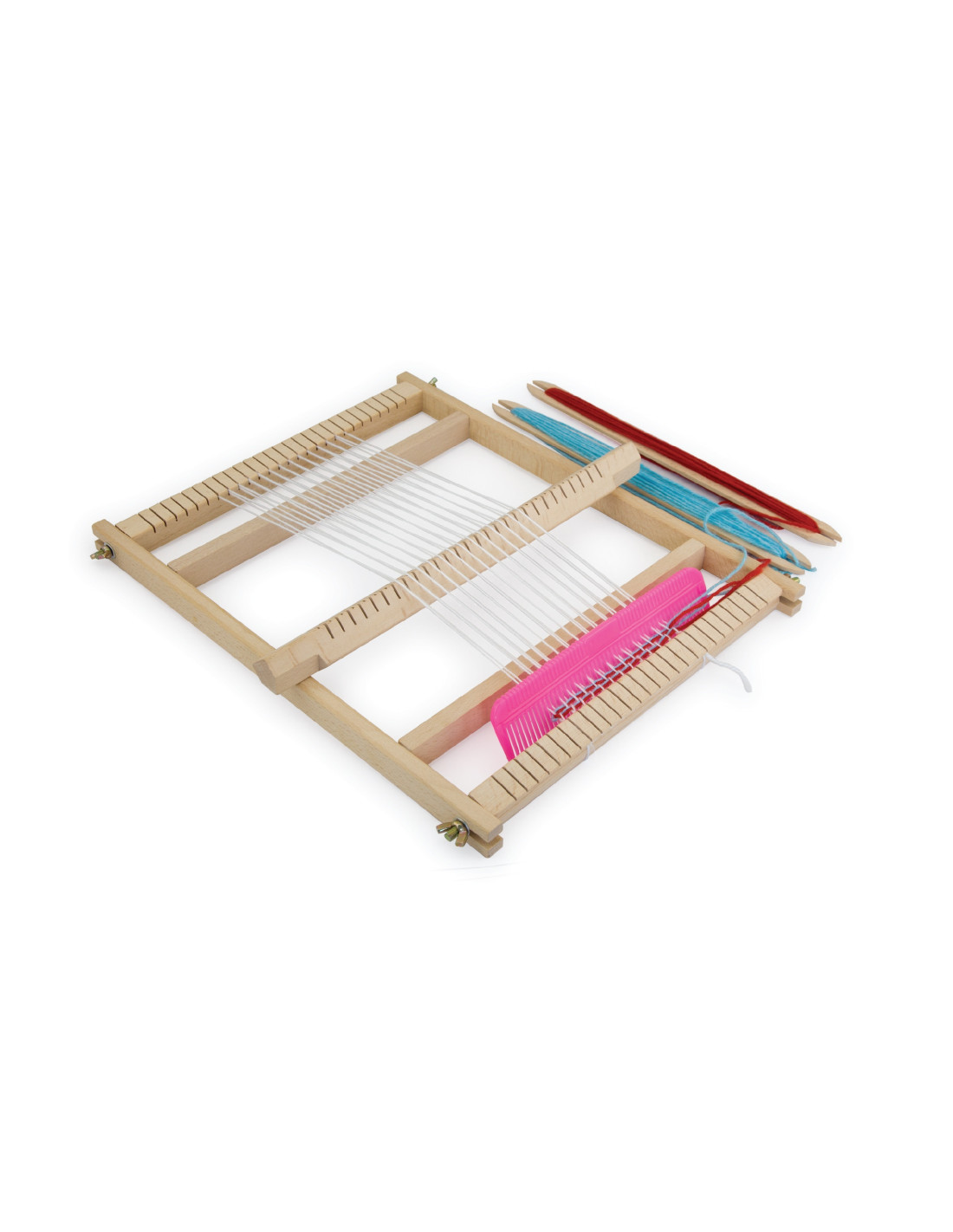 Twórcza zabawa z krosnem tkackim gwarantuje ciekawe zajęcie, w którym każdy maluch może stworzyć swój własny warsztat tkacki.