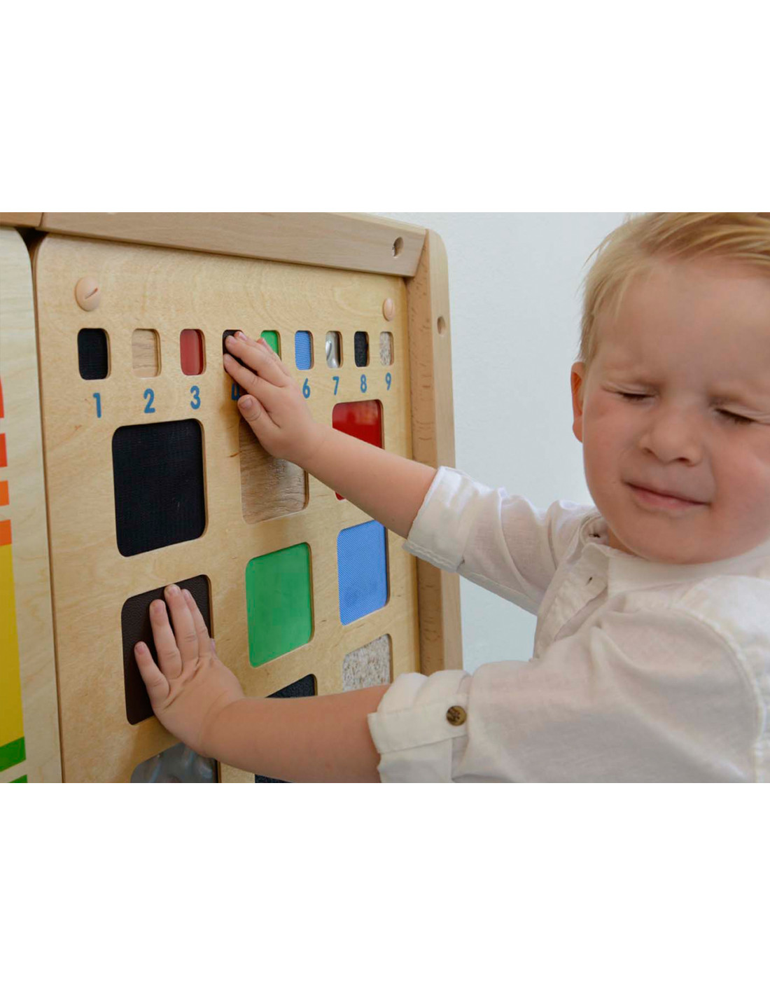 Tablica sensoryczna do ćwiczenia zmysłu dotyku to świetna zabawka edukacyjna wspomagająca rozwój zmysłów dziecka, ale również nieoceniona pomoc dydaktyczna, którą można z powodzeniem wykorzystać w przedszkolach, szkołach ale również w poradniach dla dzieci z autyzmem, aspergerem i zaburzeniami SI.