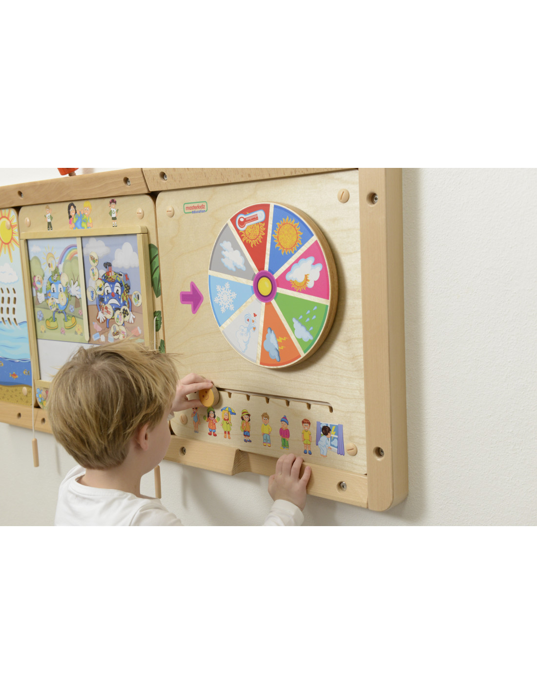 - - po wybraniu danej pogody poprzez obrócenie koła - można zapytać dziecko, w co się ubrać przy danych warunkach pogodowych